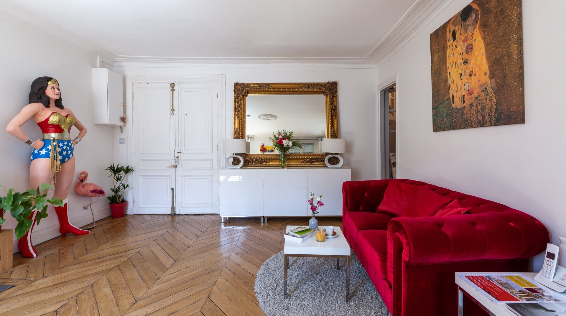 Although we don't expect any villains plotting to take over this smart neighbourhood, the superheroes in this home will be your self-appointed vigilantes. Your host's passion for superheroes also means they've complimented the more traditional features of this Parisian studio with other playful pieces of pop art to create a personal space that will certainly nurture your inner child. You're at a crossroads of two beautiful neighbourhoods - Opéra to the south as well as trendy South Pigalle to the north perfect for dinner and drinks as a couple.