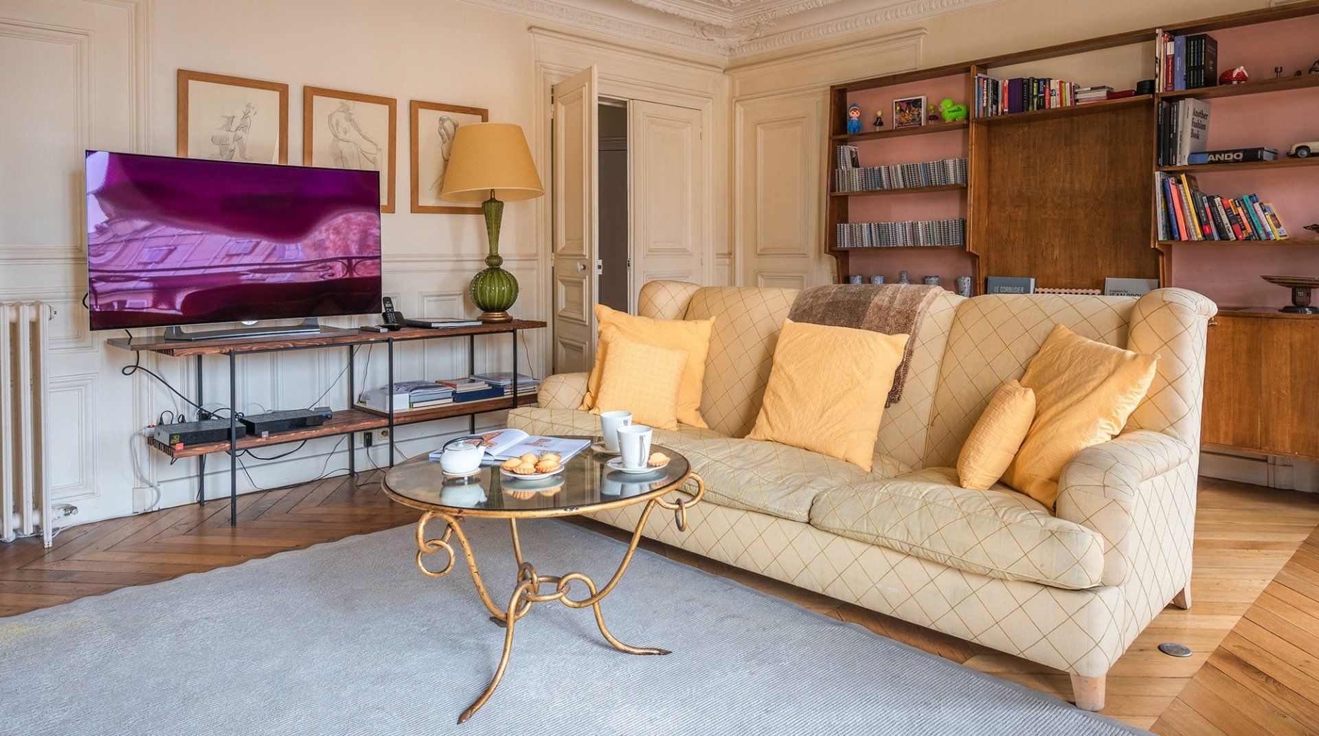 This quintessentially Haussmanian home at the heart of Saint Germain-des-Prés boasts period features that will transport you back in time – there are intricate marble fireplaces, fine mouldings and herringbone parquet. The key element in this home is space, with plenty to go around for the whole group. A second living room with a large smart TV is perfect to unwind with your favourite shows, while the area has so much to offer that we predict you'll be spending most of your time exploring the local attractions.