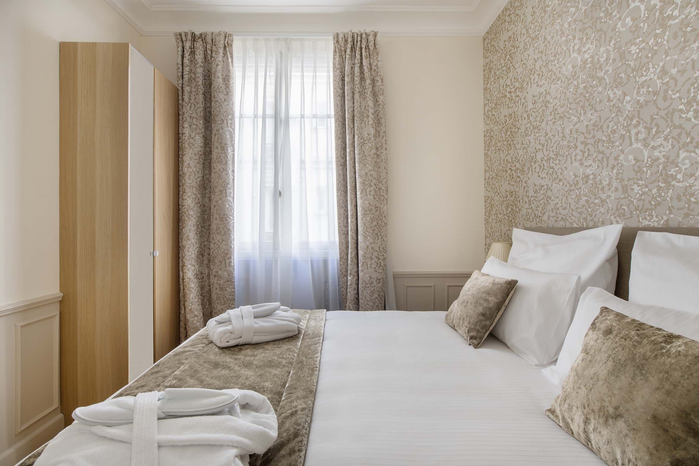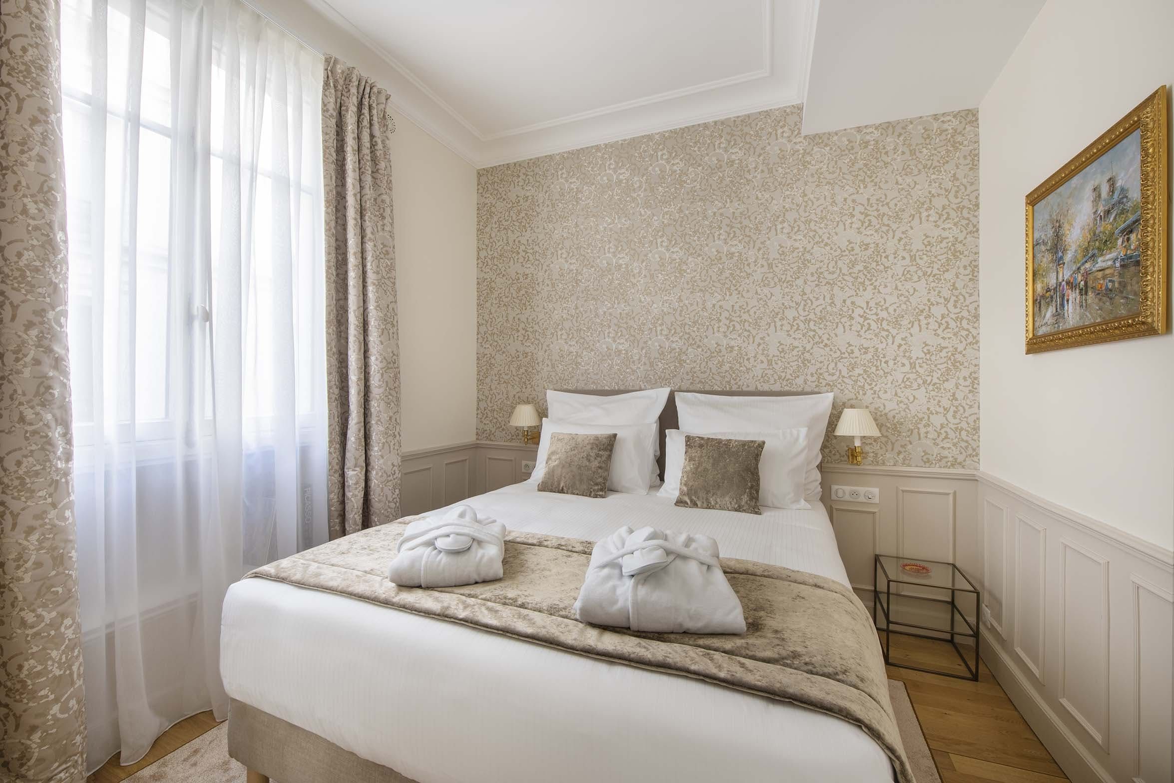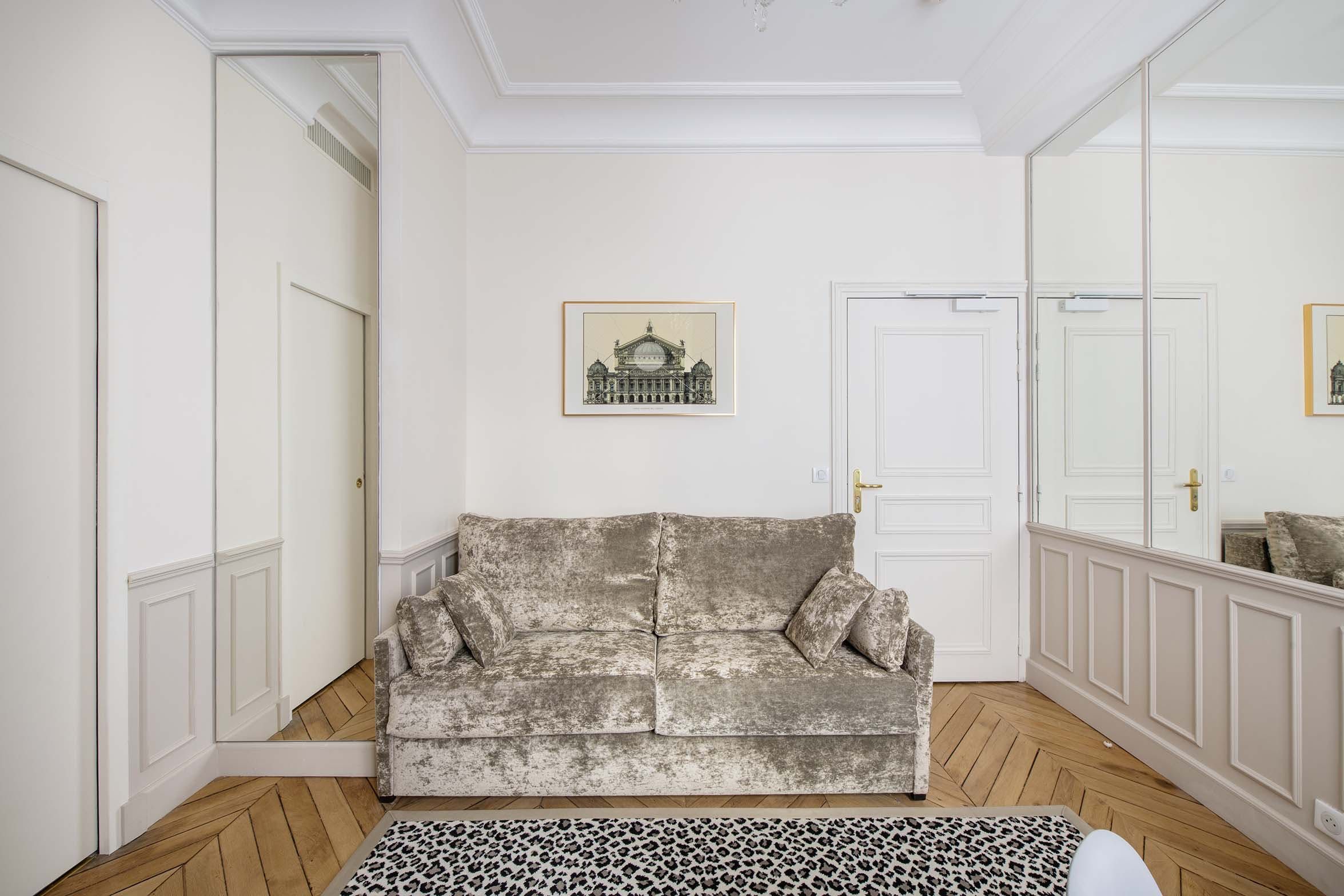 Sitting on the second floor of a handsome Haussmannian residence and nestled amidst the cobbled streets of Le Marais, this home boasts a storied past as a former jeweller's workshop. These days, its exquisitely renovated interiors, exuding a classic elegance, are brimming with contemporary comforts and provide the perfect setting for uncovering the hidden gems of Paris.