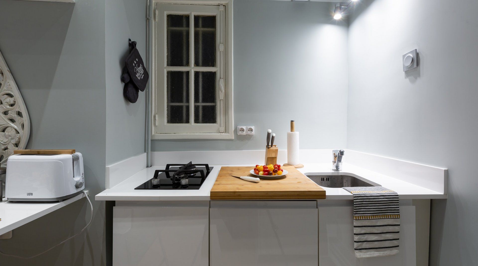 South Pigalle is known for its vibrant atmosphere, full of cocktail bars, bustling cafés, and the world-famous Moulin Rouge. Five minutes from Pigalle metro, and a ten-minute walk from the iconic windmill itself, this apartment is set in one of the quarter’s trendy areas by the historic Rue des Martyrs. Quite the opposite of this lively street, the entrance to your home is set in a tranquil courtyard with flowing foliage. The interiors are understated and modern, but you’ll still find traditional elements such as panelled walls, parquet floors, and a wrought-iron balconette on the French window. As for less traditional features, how about blue, floor-to-ceiling zebra-print curtains? We also love the matching chair – this fabric brings such a playful and quirky edge to this otherwise sophisticated abode. After a morning espresso at the sleek breakfast bar, head out for bakery-fresh pain aux raisins. You’ll need this to satisfy your appetite as you wind your way up the hill to the Sacré-Cœur. This eleven-minute walk through the colourful streets of Montmartre is worth it for the incredible views of the city and basilica.