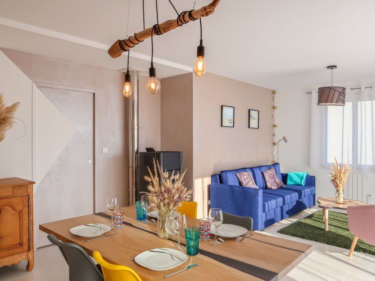 "Océane", 3-room house 70 m2. Bright, beautiful and tasteful furnishings: living/dining room with 1 double sofabed (1 x 140 cm, length 200 cm), TV and international TV channels (flat screen), wood-burning stove. 1 room with 1 french bed (1 x 160 cm, length 200 cm), bath/WC. 1 room with 2 beds (90 cm, length 190 cm).