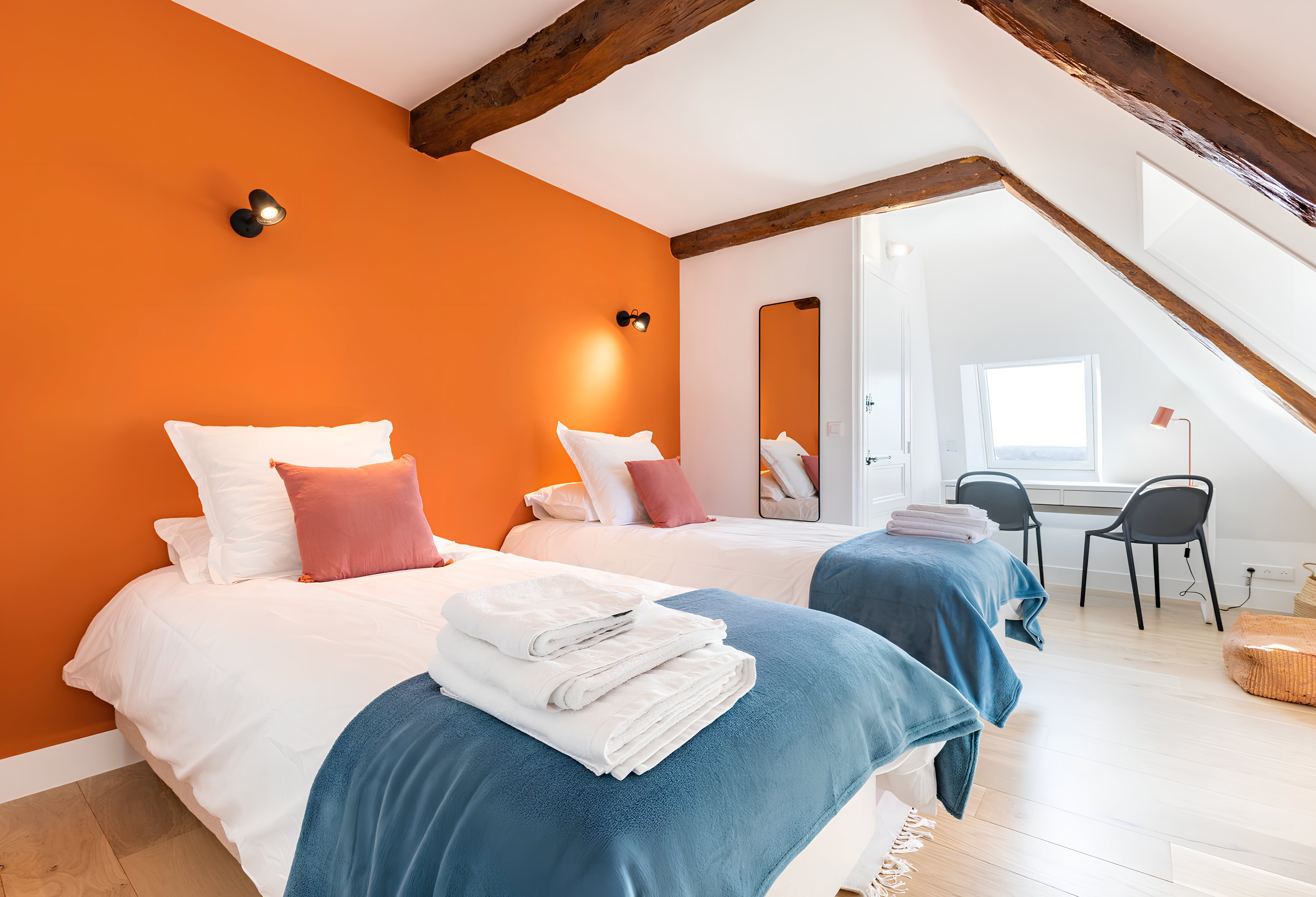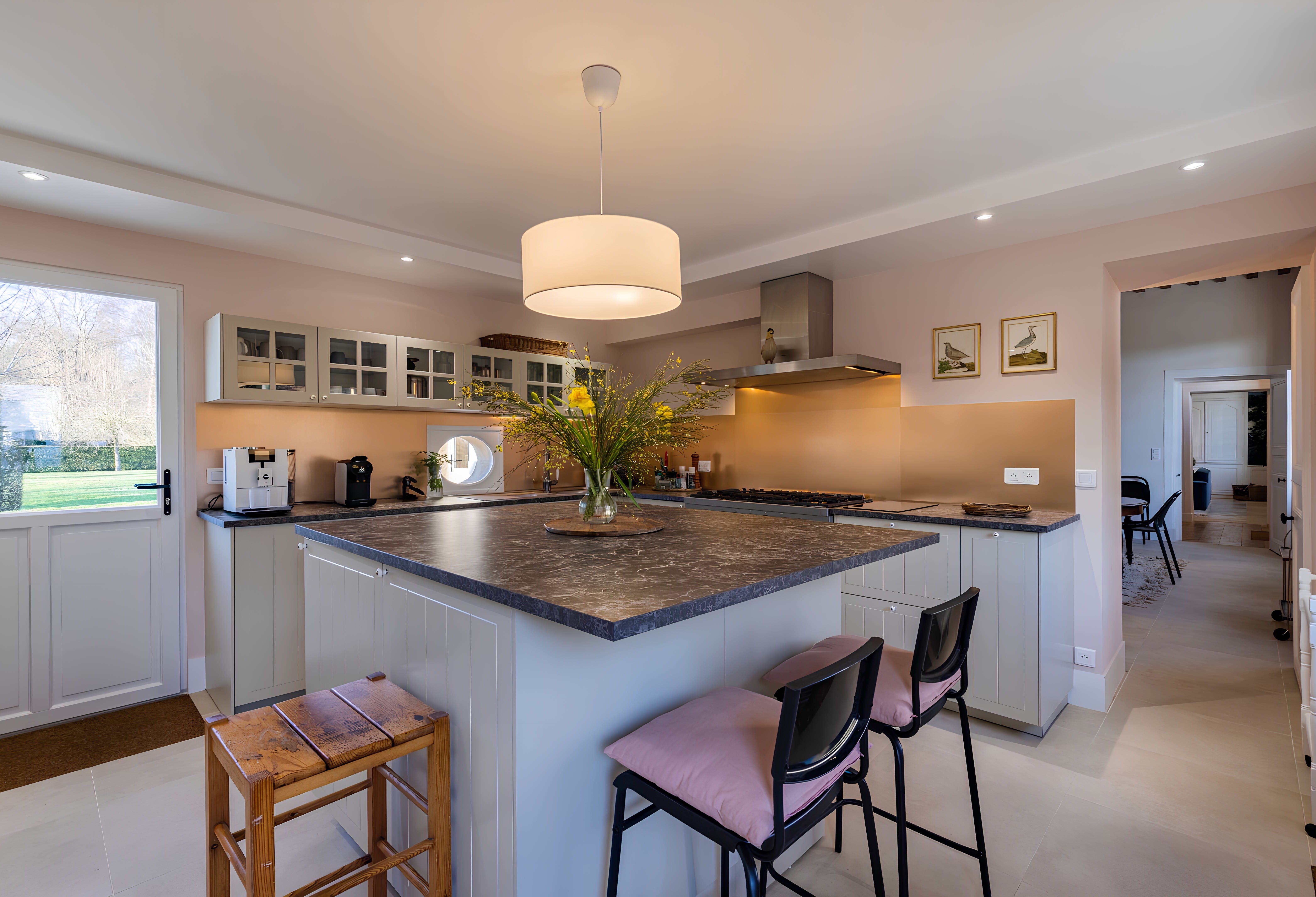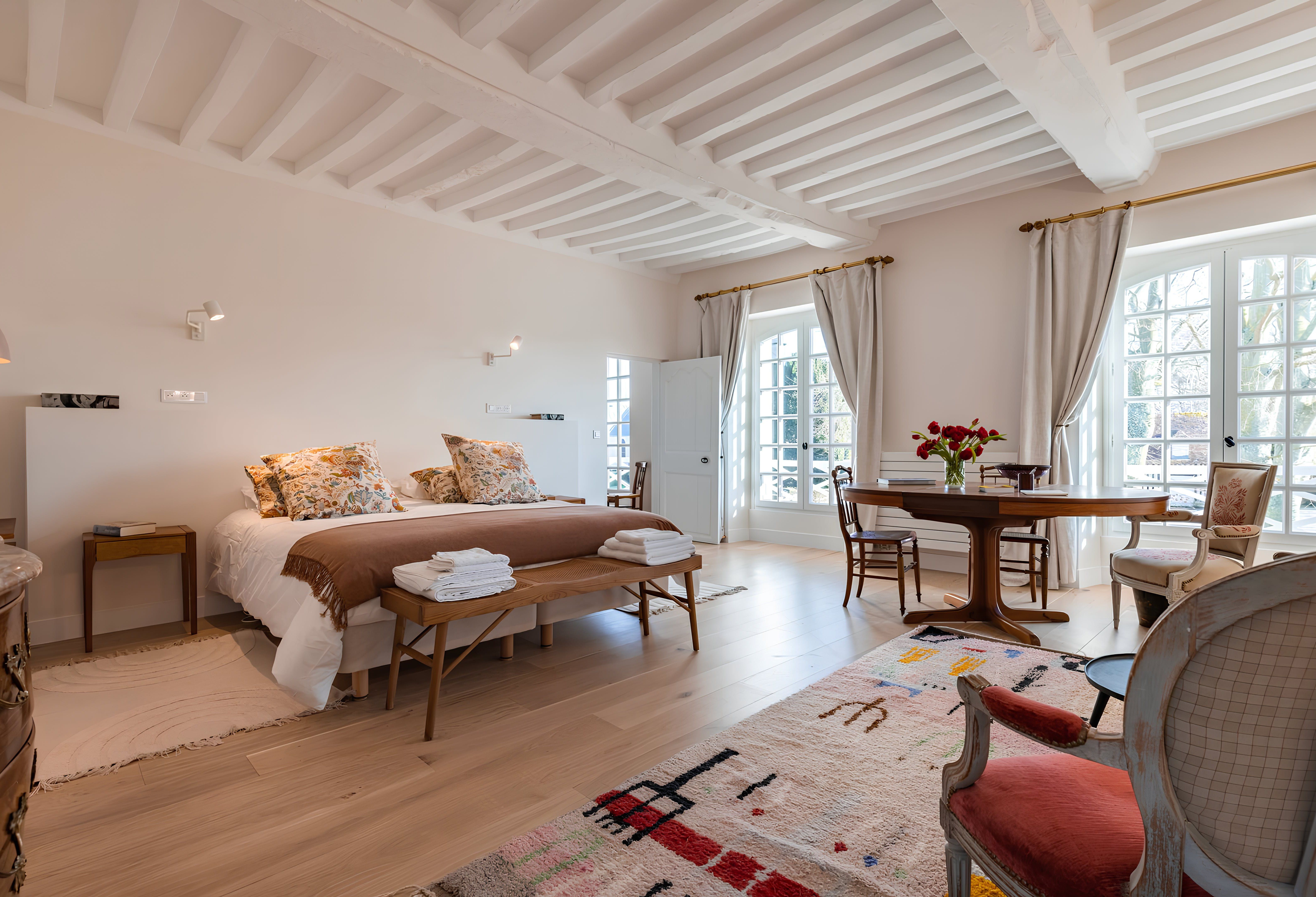 This incredibly charming 18th-century manor house, tucked away in the beautiful Normandy countryside, has stood since 1762 and now welcomes family and friends to experience the tranquillity of the estate. Modernised since, it features bold and vibrant design choices that haven't compromised the historic elements like the exposed beams or the statement hearth in the dining space. The sloped ceilings might not agree with taller guests, but it isn't persistent throughout the home and with a healthy acreage at your disposal outside, you can stretch and stroll to your heart's desire.