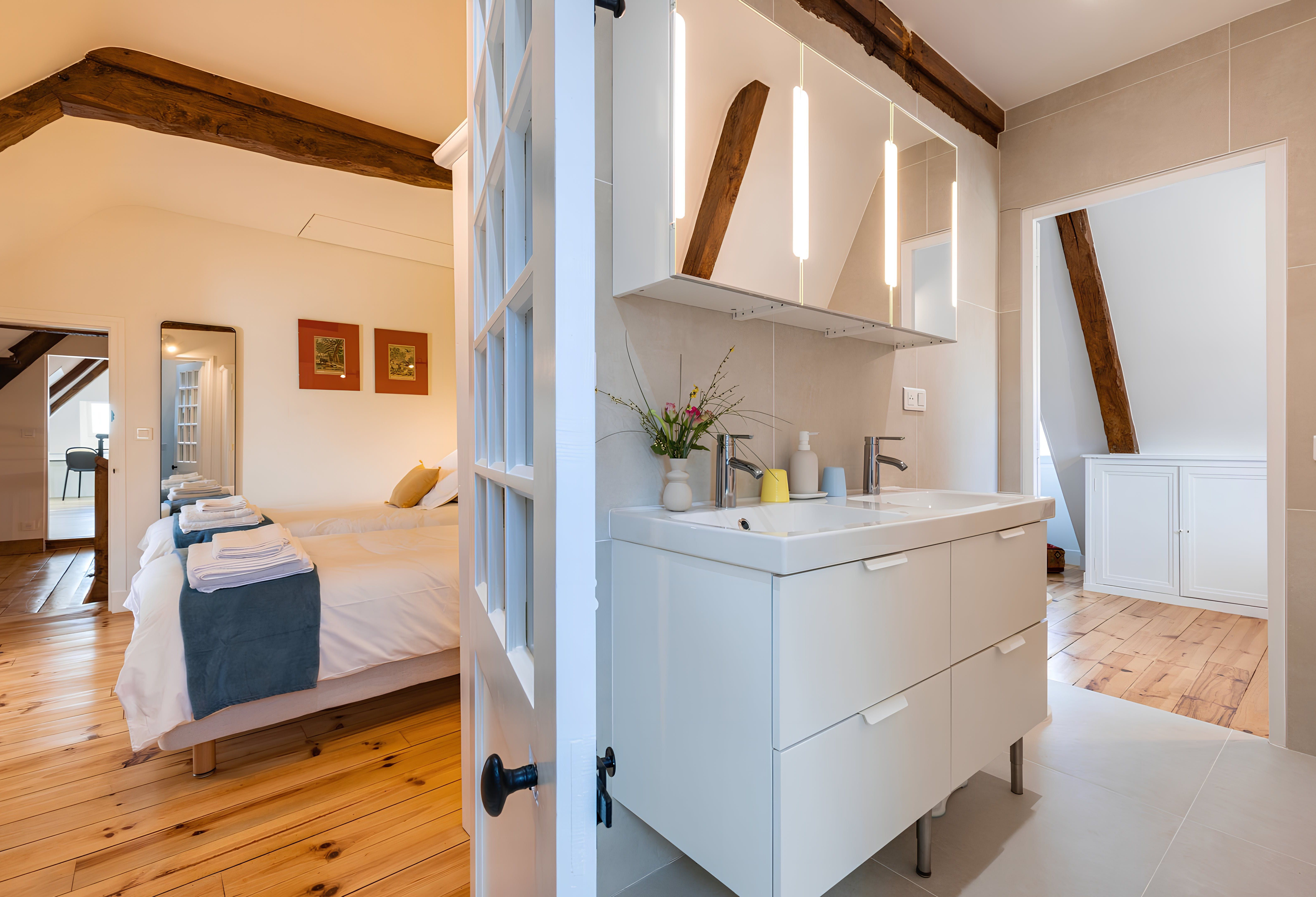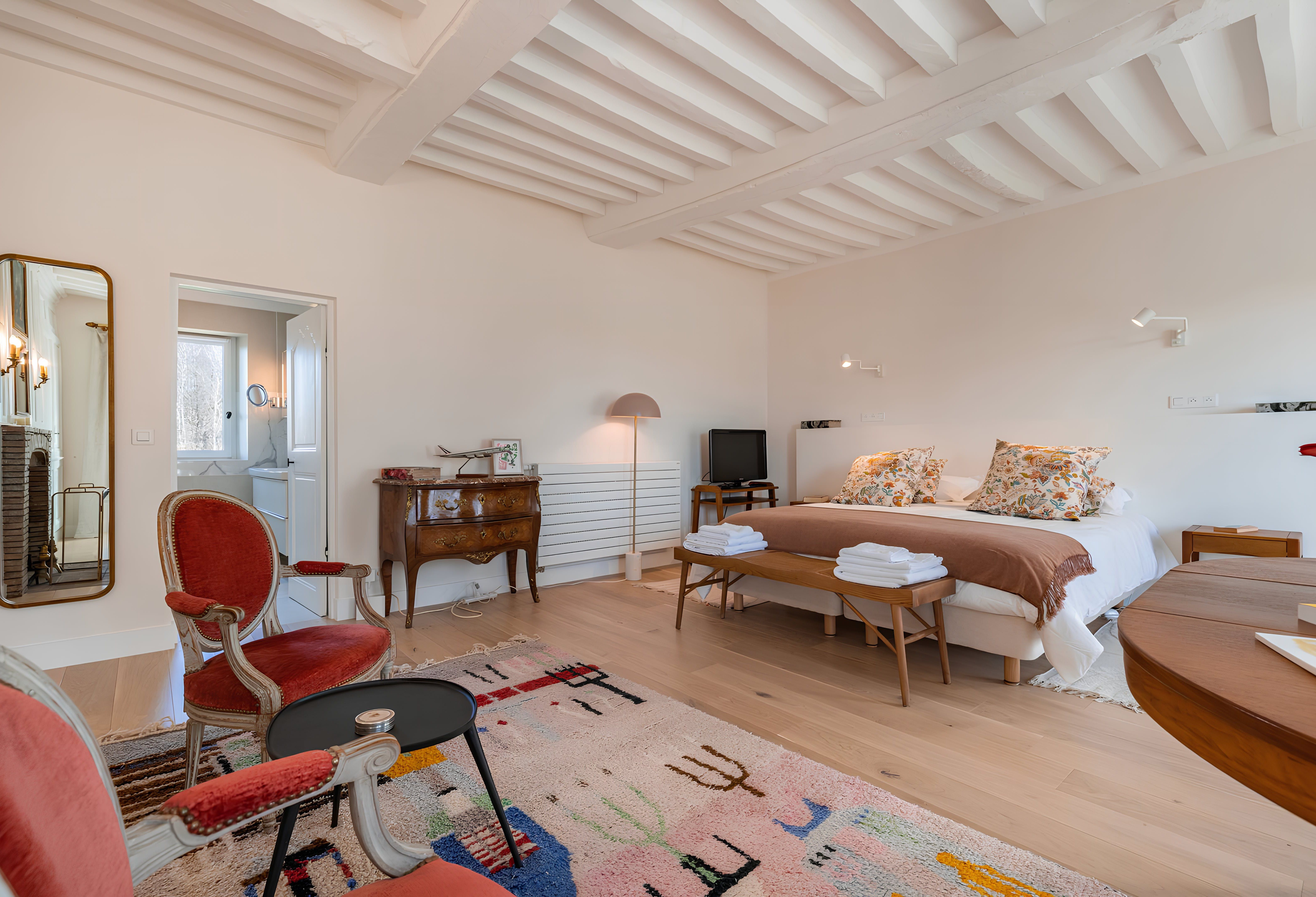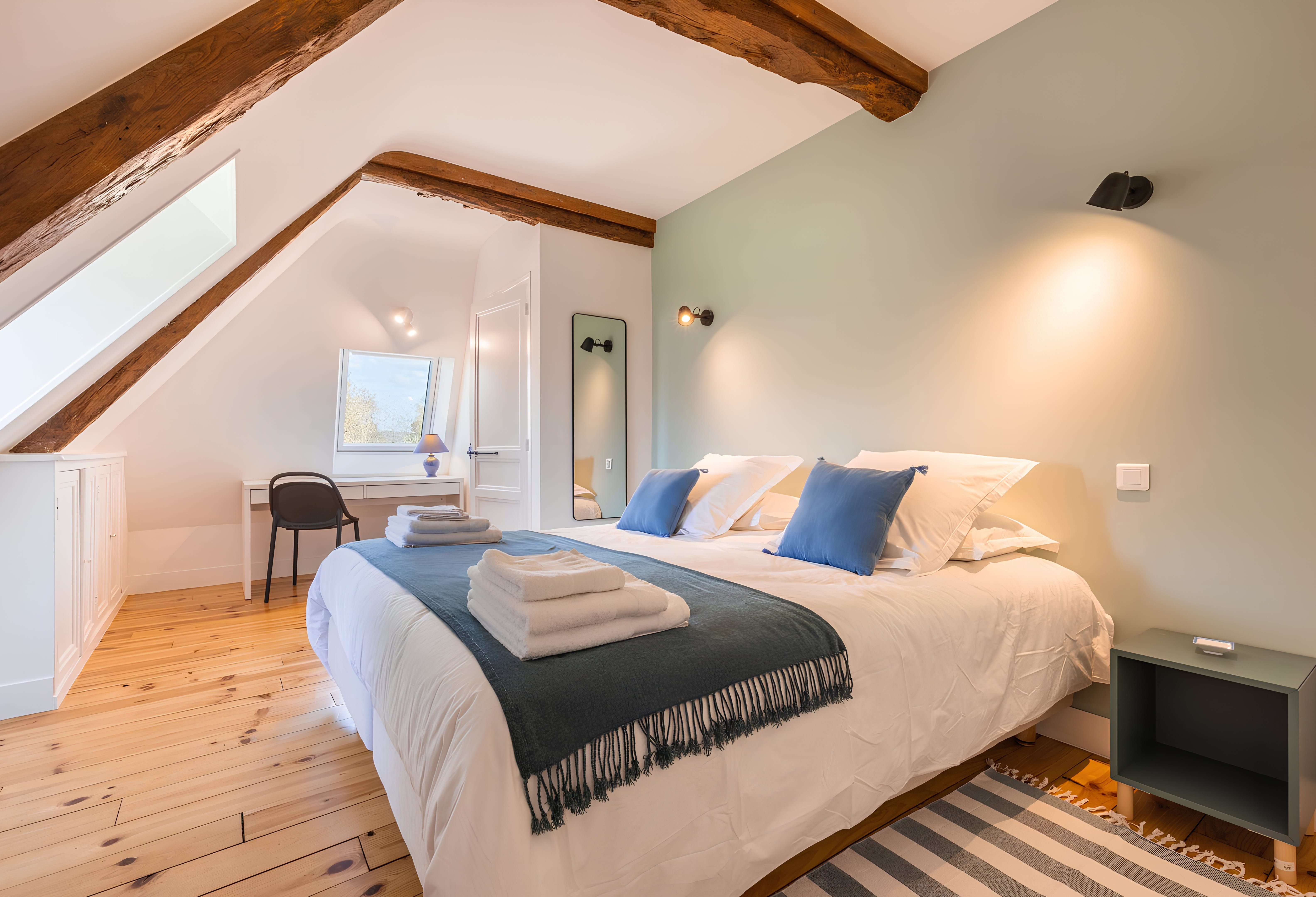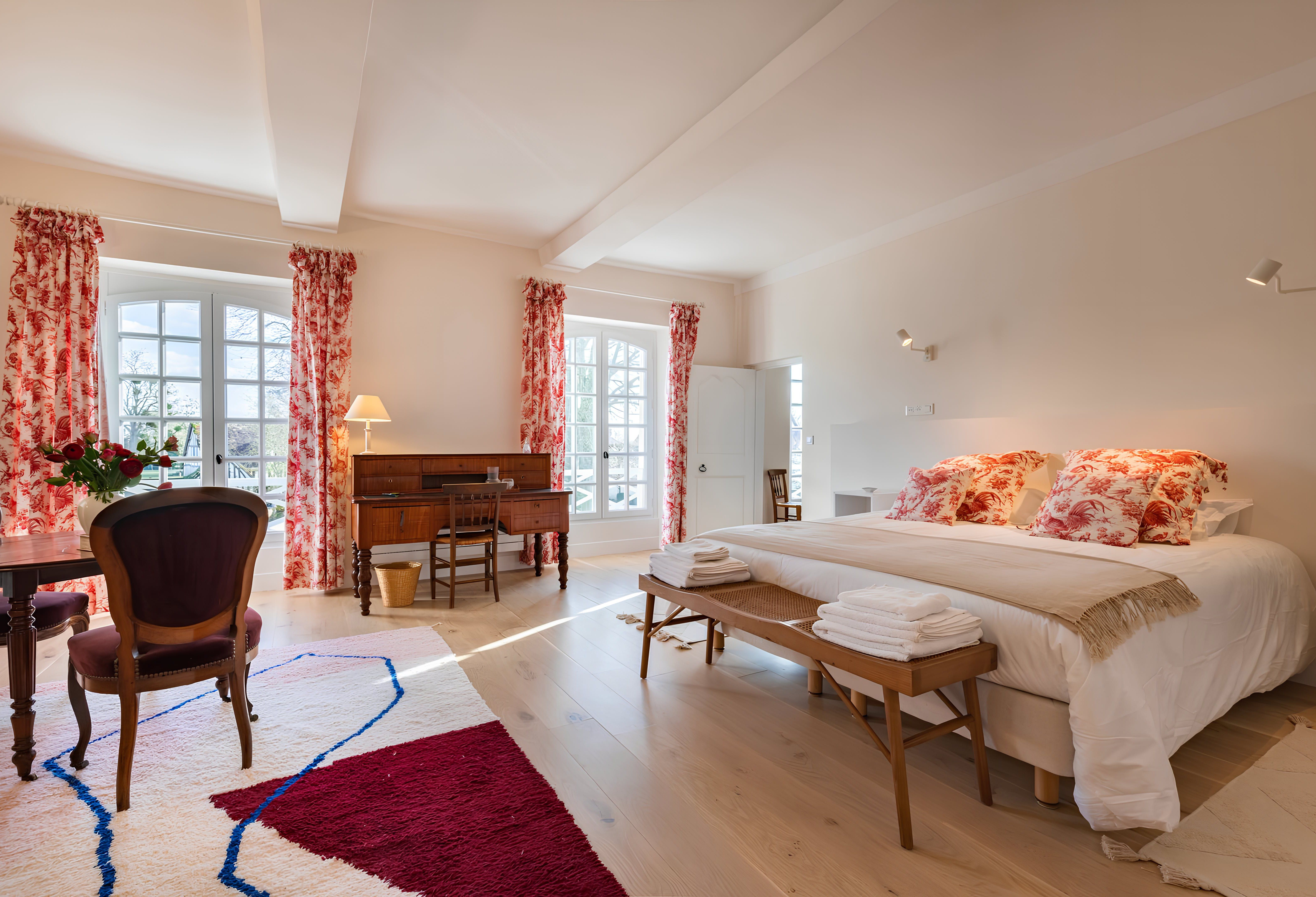 This incredibly charming 18th-century manor house, tucked away in the beautiful Normandy countryside, has stood since 1762 and now welcomes family and friends to experience the tranquillity of the estate. Modernised since, it features bold and vibrant design choices that haven't compromised the historic elements like the exposed beams or the statement hearth in the dining space. The sloped ceilings might not agree with taller guests, but it isn't persistent throughout the home and with a healthy acreage at your disposal outside, you can stretch and stroll to your heart's desire.