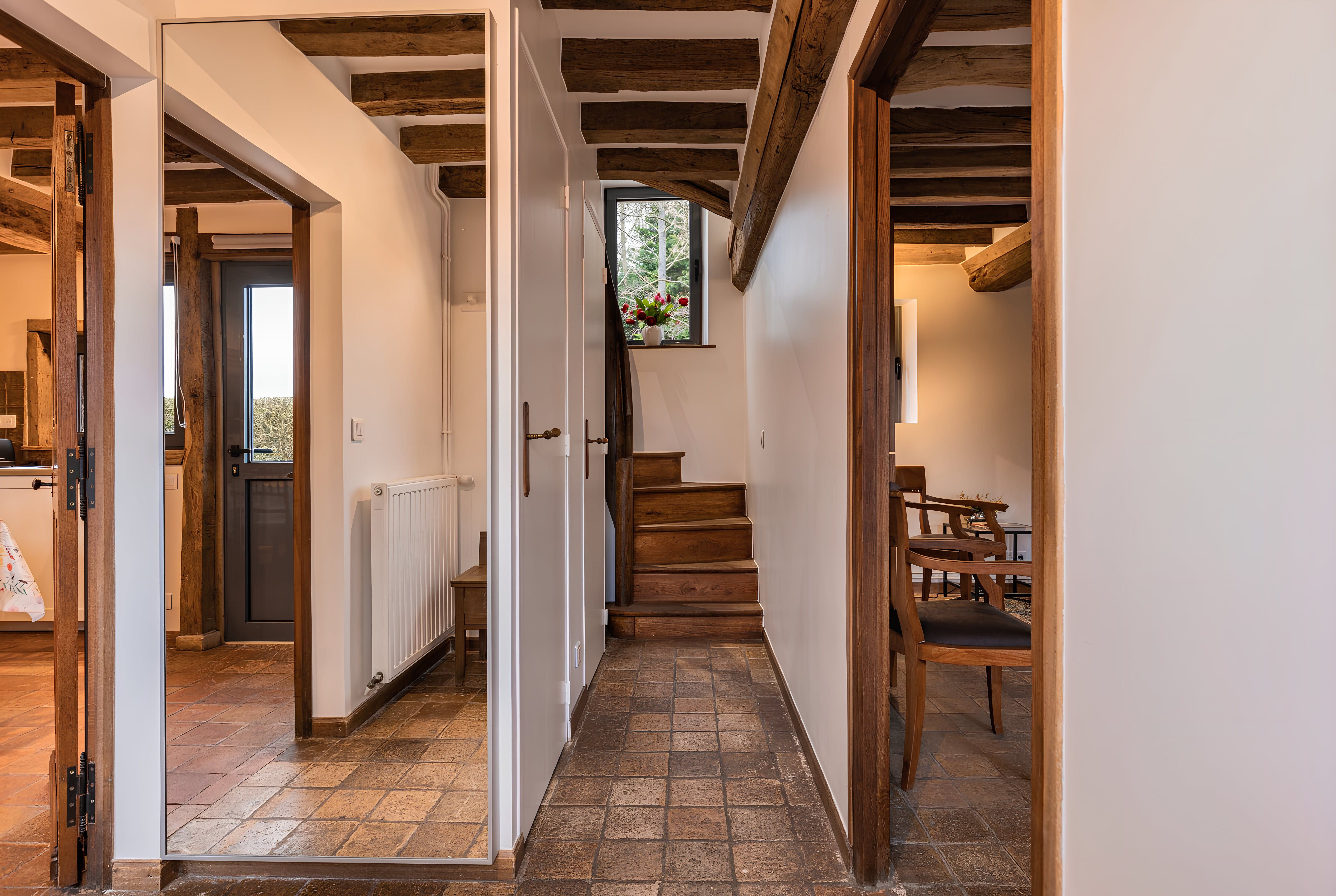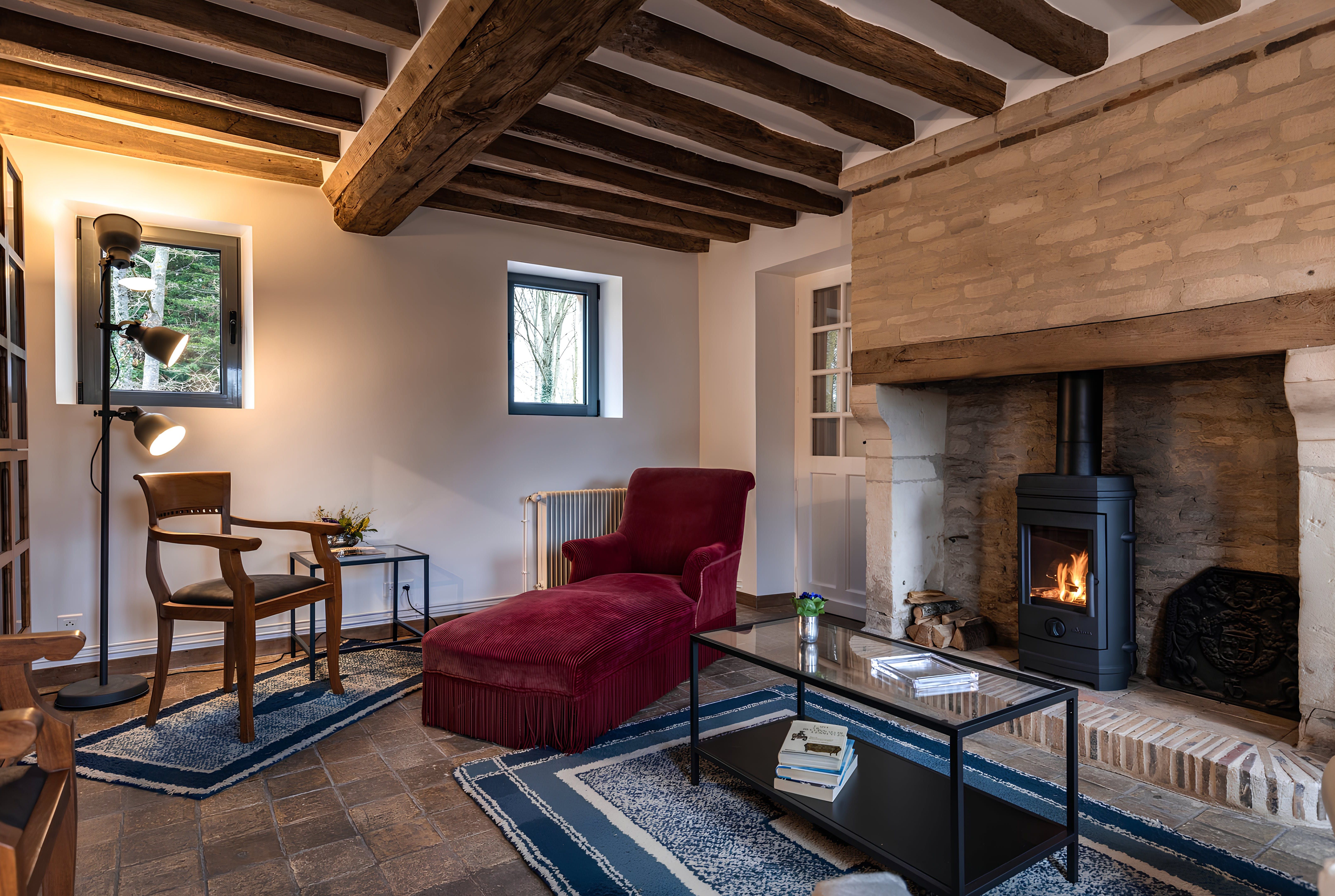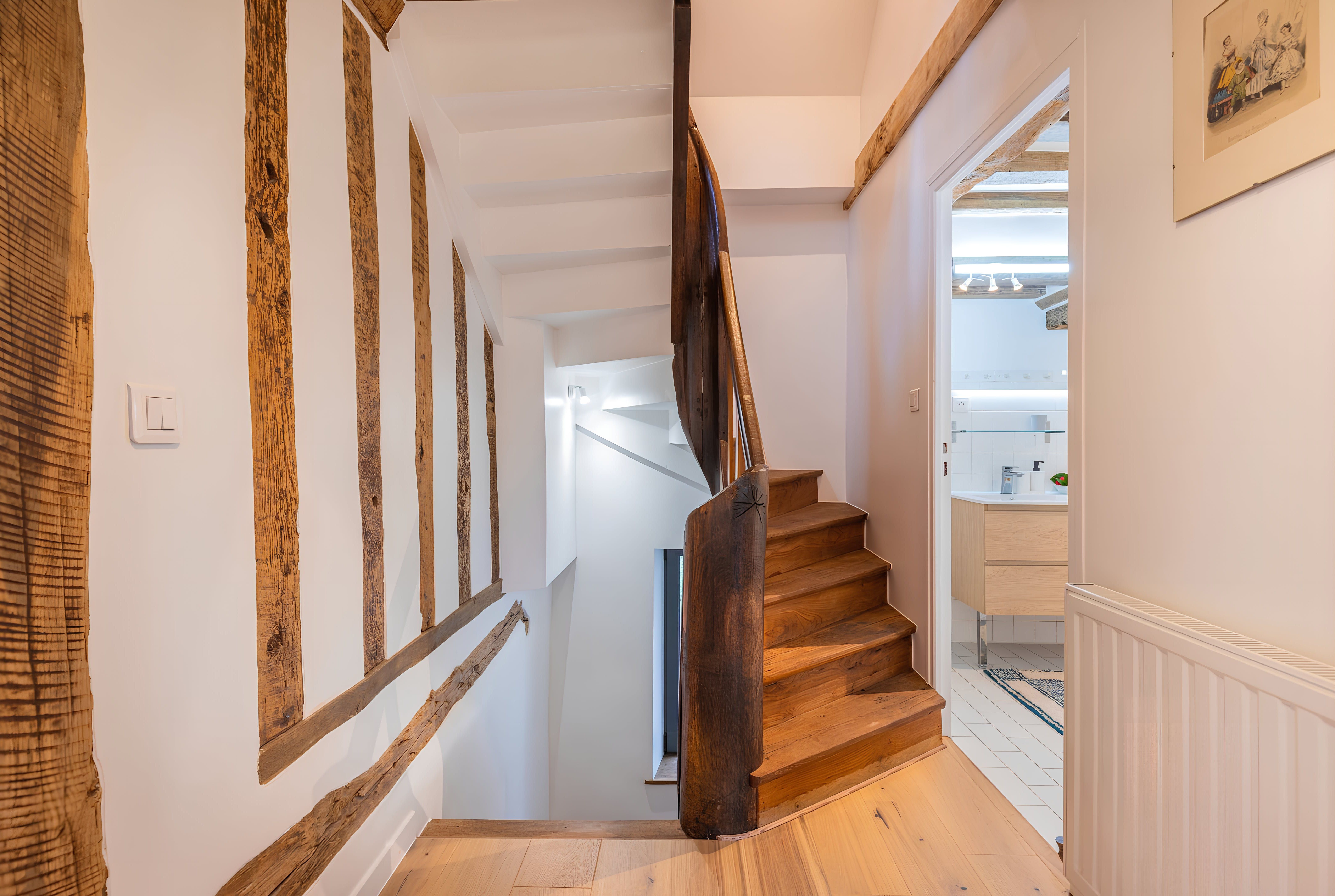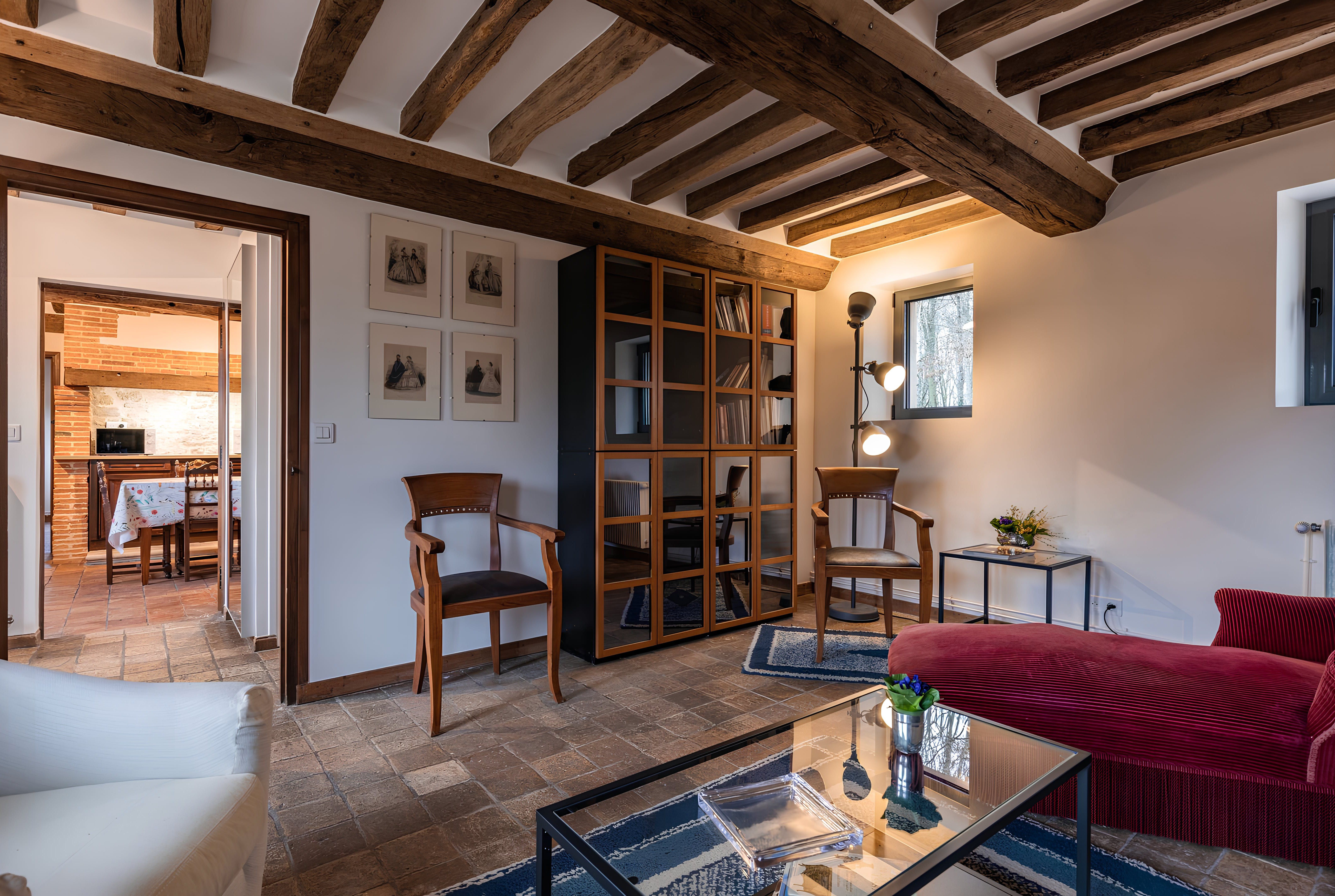 Nestled in the countryside of Normandy, this characterful home is a rural retreat with fireside armchairs, exposed wood beams, and a winding staircase. As well as the outdoor dining table, you'll have access to a shared swimming pool in the summer months. However, the sloped ceilings and connected bedrooms in the attic may be a better fit for kids than couples. Make sure you hire a car and plan a drive to Caen, thirty minutes away. Feel like a beach day instead? Take a road trip to the Plage de Cabourg, just twenty minutes by car.