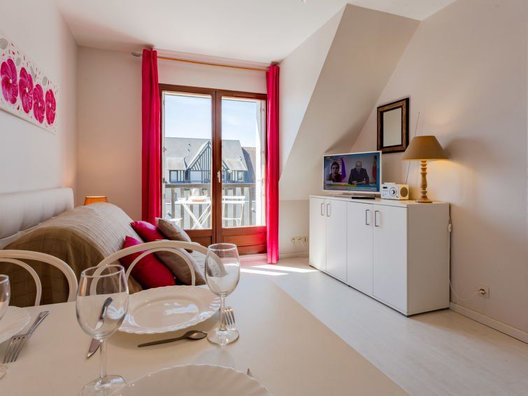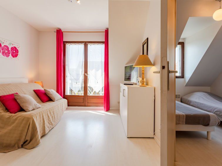 2-room apartment 21 m2 on 2nd floor, south-west facing position. Comfortable furnishings: living/dining room with 1 double sofabed (1 x 140 cm, length 190 cm), kitchen corner and TV (flat screen). Exit to the balcony. 1 room with 2 beds (90 cm, length 190 cm). Kitchenette (2 induction hot plates, toaster, kettle, electric coffee machine).