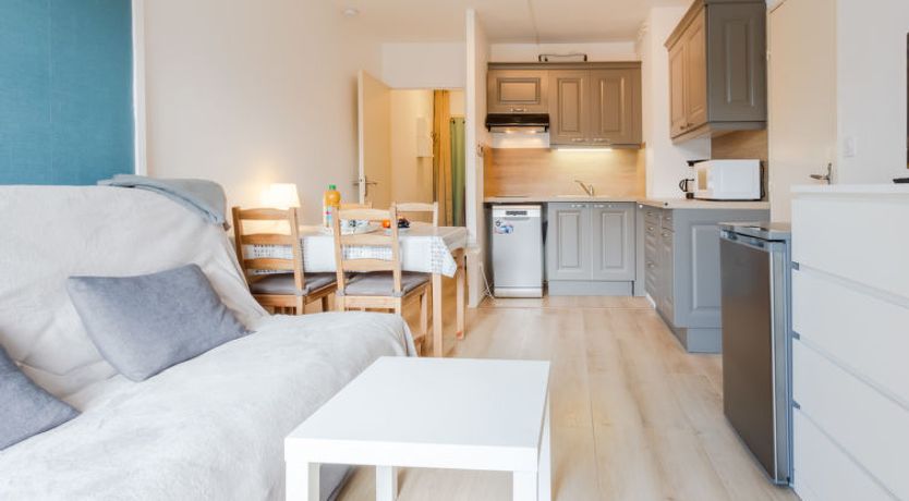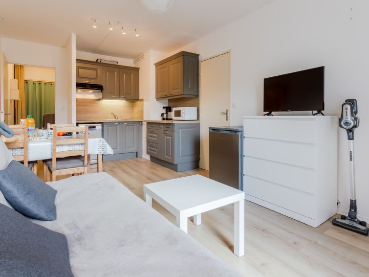 2-room apartment 31 m2 on 2nd floor. Living/dining room with 1 double sofabed (140 cm, length 200 cm), TV (flat screen). Exit to the balcony. 1 room with 1 french bed (140 cm, length 190 cm). Exit to the balcony. Kitchenette (dishwasher, 2 induction hot plates, toaster, kettle, microwave, electric coffee machine).