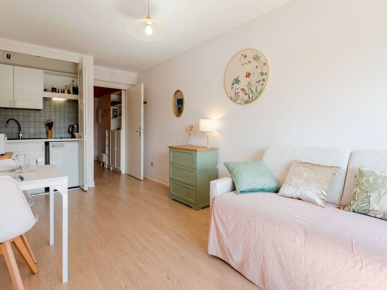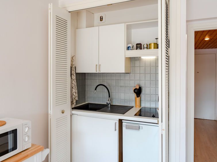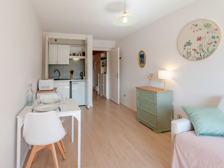 "Alicia", 1-room studio 23 m2 on 3rd floor, south facing position. Beautiful furnishings: entrance hall. Living/dining room with 1 double sofabed (1 x 140 cm, length 190 cm). Exit to the balcony, west facing position. Open kitchen (2 hot plates, toaster, kettle, microwave, electric coffee machine).