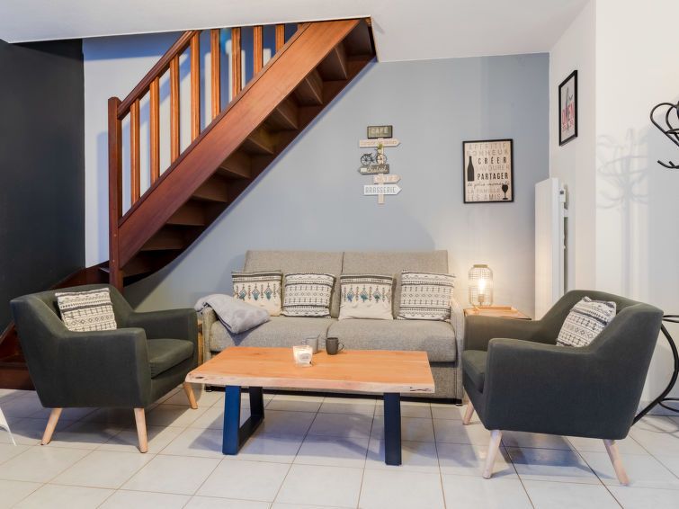 "Le Hameau du prieuré", 4-room apartment 80 m2 on 2 levels, west facing position. Object suitable for 2 adults + 3 children. Living/dining room with TV (flat screen). Exit to the patio, west facing position. Open kitchen (oven, 3 induction hot plates, toaster, kettle, microwave, electric coffee machine).