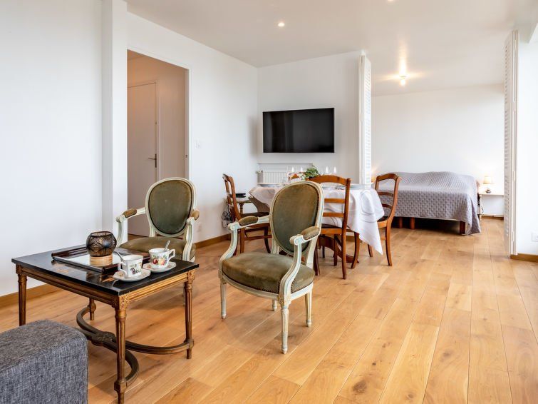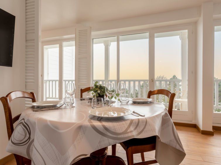 The residence has a little colonial side which is very pleasant and you can easily reach the port of Trouville by car. The apartment is impeccable, very well equipped with very high quality dishes, which is nice. The view of the sea and the beaches of Trouville and Deauville from the balcony/terrace is simply superb, overlooking the Cordier park. Not to mention the beautiful brightness of the apartment and the elegance of the furniture as well as a modern and practical shower room.