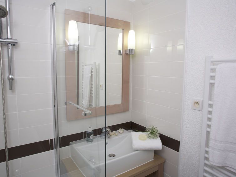 "Le Port", 1-room studio 25 m2. Beautiful furnishings: living/sleeping room with 2 sofabeds (80 cm, length 190 cm), TV (flat screen). Exit to the balcony. Sleeping alcove with 1 x 2 bunk beds (80 cm, length 190 cm). Kitchenette (dishwasher, 2 ceramic glass hob hotplates, toaster, kettle, microwave, electric coffee machine, combination microwave).