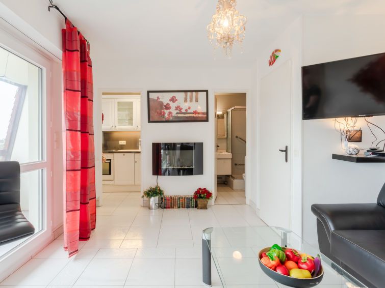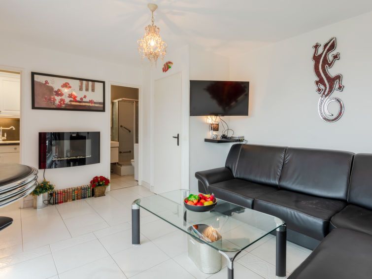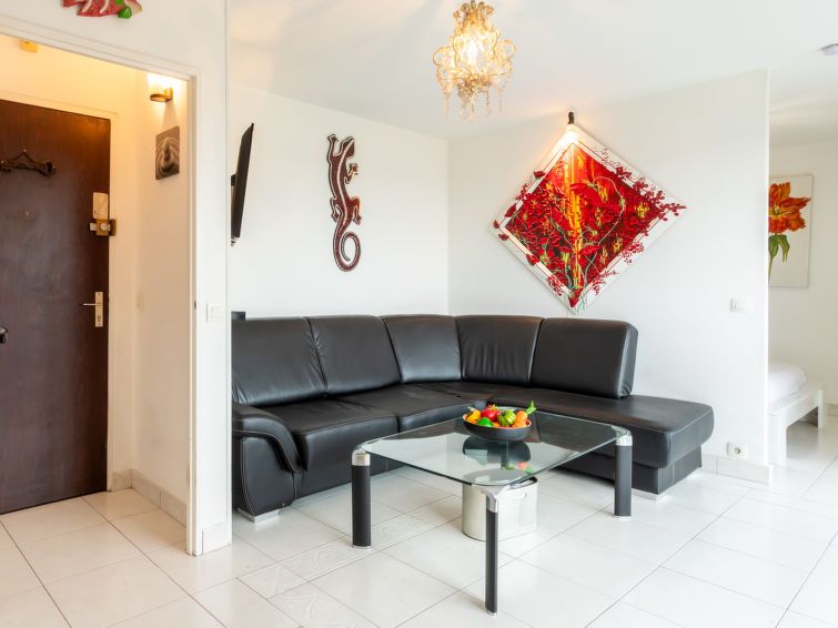 "Les Flots Bleus", 1-room studio 25 m2 on 2nd floor, south facing position. Entrance hall. Living/dining room with 1 double bed (1 x 140 cm, length 190 cm), dining nook and TV (flat screen). Exit to the balcony. (4 hot plates, dishwasher, toaster, kettle, electric coffee machine).