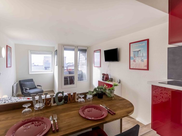 1-room studio 25 m2 on 5th floor. Entrance hall. Living/dining room with 1 french bed (1 x 140 cm, length 190 cm), TV (flat screen). Exit to the balcony. Kitchenette (oven, 2 induction hot plates, toaster, kettle, microwave, electric coffee machine). Bathroom, sep. WC. Electric heating.