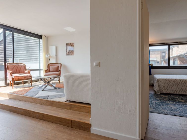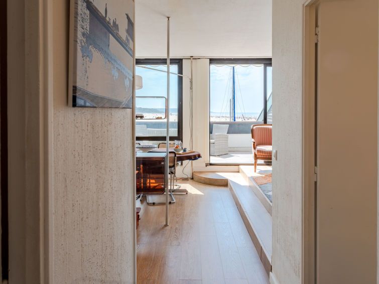 "Les Marinas", 2-room apartment 50 m2 on 1st floor, south-west facing position. Bright: living/dining room. Exit to the terrace, south facing position and west facing position. 1 room with 1 french bed (1 x 140 cm, length 190 cm), TV (flat screen). Open kitchen (oven, dishwasher, 4 induction hot plates, toaster, kettle, microwave, electric coffee machine).