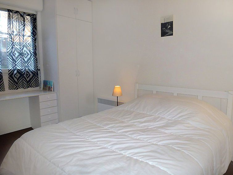 2-room apartment 45 m2 on 2 levels on 1st floor. Bright: entrance hall. 1 room with 1 french bed (140 cm). Shower/WC. Electric heating. On the lower ground floor: large living room with panoramic window with 1 double sofabed (140 cm), dining nook and TV (flat screen), DVD. Exit to the terrace, east facing position.