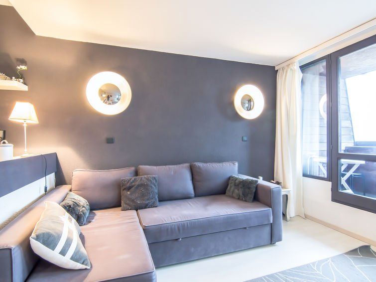 1-room studio 25 m2 on 5th floor, east facing position. Modern furnishings: entrance hall with 1 x 2 bunk beds (80 cm, length 180 cm). Living/dining room with 1 double sofabed (1 x 140 cm, length 190 cm), TV (flat screen), DVD. Exit to the balcony. Kitchenette (dishwasher, 2 ceramic glass hob hotplates, toaster, kettle, electric coffee machine, combination microwave).