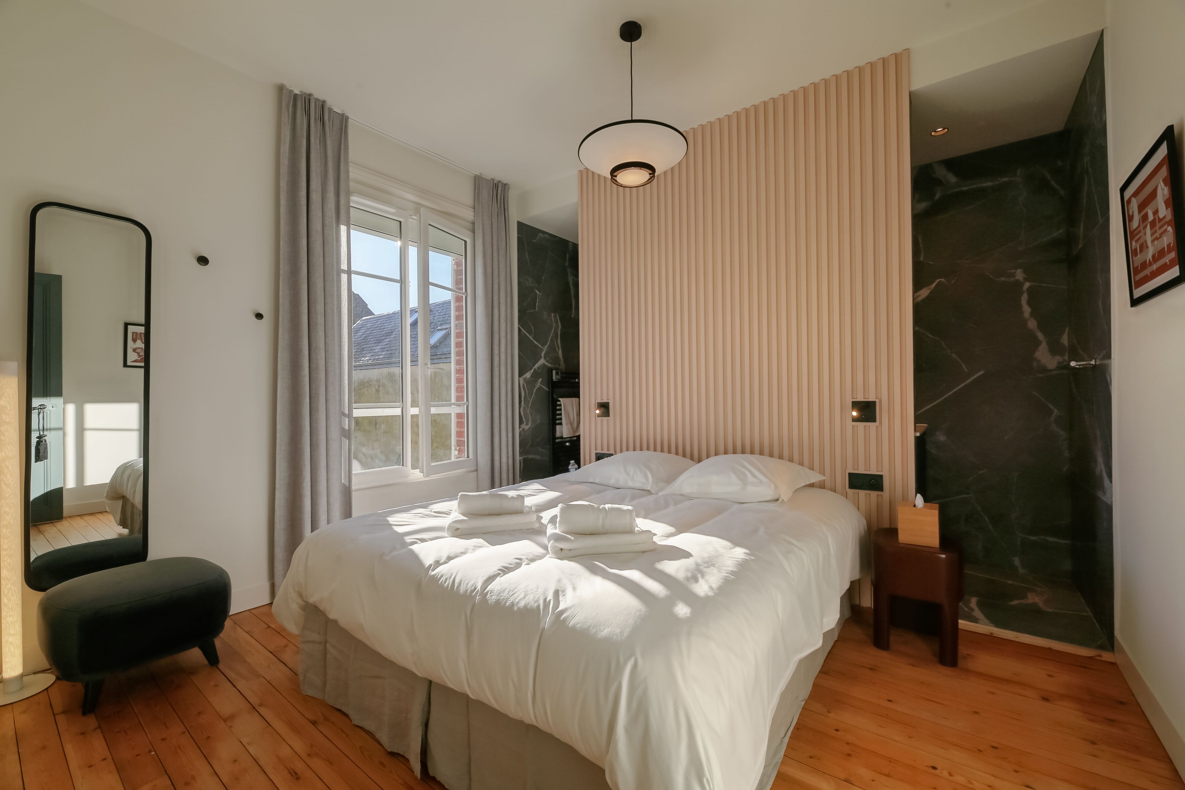 Renovated by a renowned architect, this 1900s house has a south-facing garden and terrace to enjoy. Set over several floors, you’ll find a well-equipped kitchen and a cinema room with a sofa bed. This place is ideal for families or work colleagues as there are several office areas available. Your hosts can also provide a video projector and a screen for meetings of up to fourteen people, as well. They can also offer catering and team building or leisure activities such as food and wine tastings, boat trips, 2CV tours and horseback riding on the beach. Speaking of beaches, the sea is just 400 metres away and the boutiques of Deauville are under ten minutes on foot.