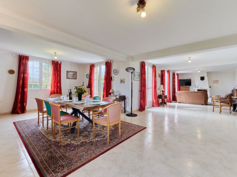 "Le Pré Fleuri", 6-room house 200 m2 on 2 levels. Beautiful and cosy furnishings: living/dining room 40 m2 with TV (flat screen). Exit to the terrace, south facing position and west facing position. 2 rooms, each room with 1 french bed (1 x 160 cm, length 200 cm). Large kitchen 18 m2 (oven, dishwasher, 1 induction hot plates, 3 gas rings, toaster, kettle, microwave, electric coffee machine).