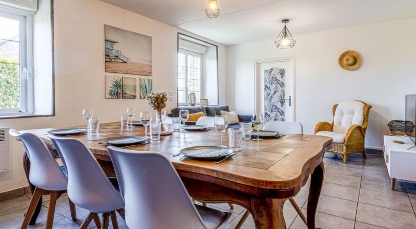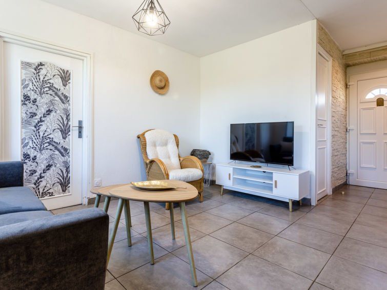 "Le Coquelicot", 4-room terraced house 70 m2. Comfortable and tasteful furnishings: living/dining room with electric heating with shower/WC. Open kitchen (4 hot plates, oven, dishwasher, toaster, kettle, microwave, electric coffee machine) with TV. Shower/WC, double hand-basin. Upper floor: 2 rooms, each room with 1 french bed (1 x 140 cm, length 190 cm), TV.