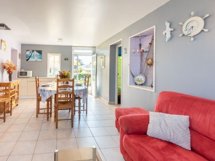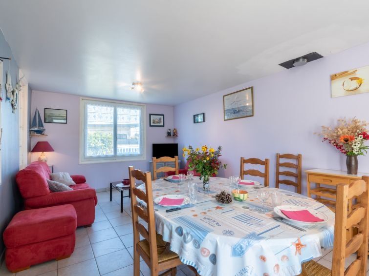Small, older house with a certain charm—for example, a creaky staircase. New bathroom on the first floor, with a separate toilet downstairs. Large dining table. Garden table and bench, as well as outdoor lounge chairs. Ideal location, with restaurants, a bakery, a grocery store, and the beach very close. Clarify where the key handover will take place, whether at the landlord's office in Le Haye or at the house.
