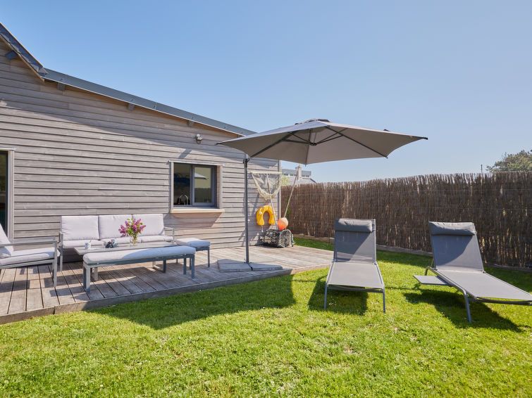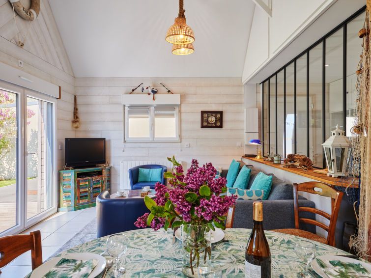 "Chez Boubou", 3-room house 80 m2. Beautiful and modern furnishings: living/dining room with dining table and TV (flat screen). Exit to the garden, to the terrace. 1 room with 1 french bed (160 cm, length 200 cm), TV (flat screen). 1 room with 2 beds (90 cm, length 190 cm), TV (flat screen).
