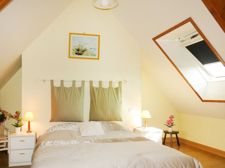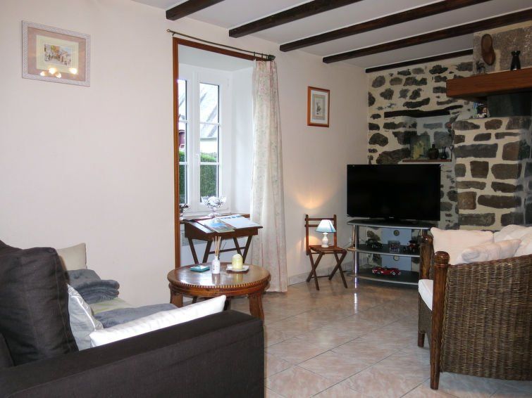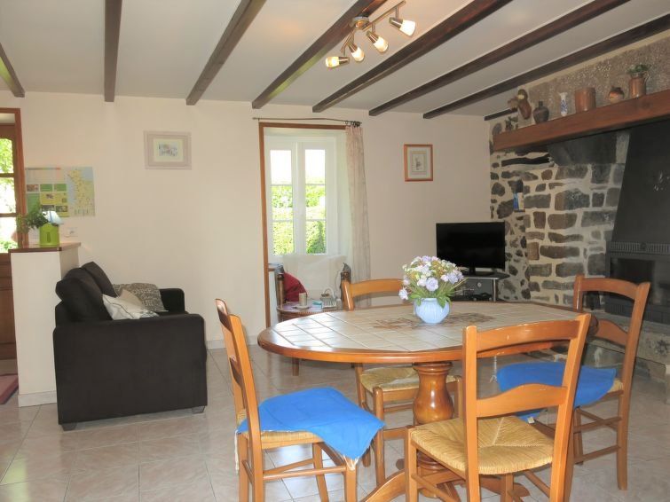"La Chevalerie", 3-room house 70 m2 on 2 levels. Cosy furnishings: living room, Low door height 150 cm with Scandinavian wood stove and TV. Exit to the terrace. Kitchen (oven, dishwasher, 2 induction hot plates, toaster, kettle, microwave, freezer, electric coffee machine). Shower, sep.
