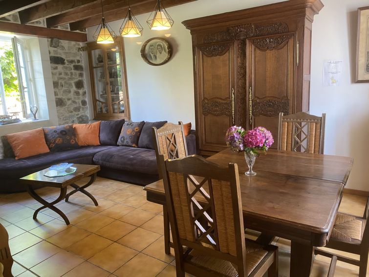 "La Bonneraie", 5-room semi-detached house 120 m2 on 2 levels. Antique and wooden furniture furnishings: living/dining room with dining table, satellite TV, radio and DVD. Large kitchen (oven, dishwasher, 4 gas rings, toaster, kettle, microwave, freezer, electric coffee machine) with open-hearth fireplace and dining table.