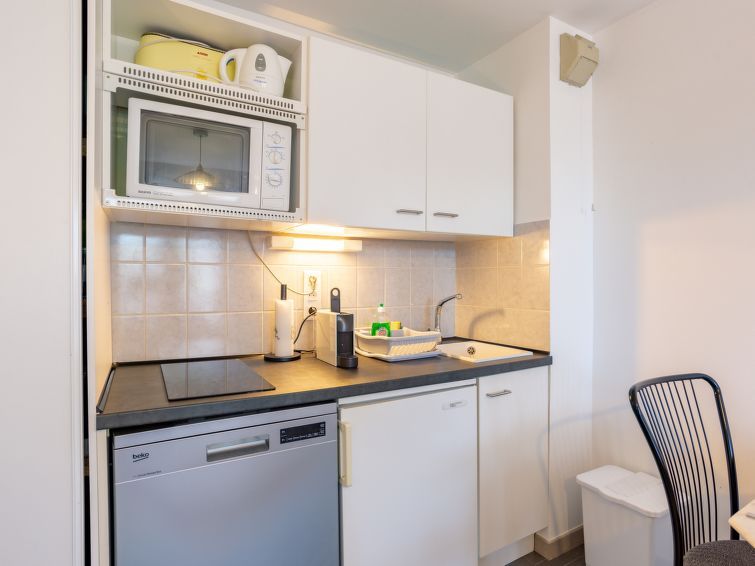 2-room apartment 25 m2 on 3rd floor, north-west facing position. Living/dining room with TV (flat screen). Exit to the balcony. 1 room with 1 french bed (140 cm, length 190 cm). Kitchenette (mini-oven, dishwasher, 2 ceramic glass hob hotplates, toaster, kettle, electric coffee machine, Capsules for coffee machine (Nespresso) extra, combination microwave).