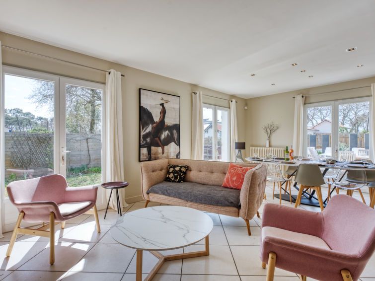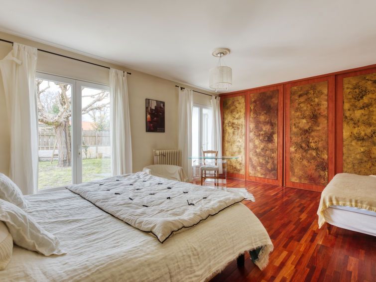 7-room villa 200 m2. Spacious and bright, comfortable and beautiful furnishings: large living/dining room with open-hearth fireplace, dining table and TV (flat screen). Exit to the garden. Lounge with TV (flat screen), hi-fi system and DVD. Exit to the garden. 3 rooms, each room with 1 french bed (140 cm, length 190 cm).