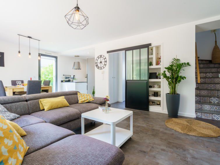 3-room house 90 m2. Modern and tasteful furnishings: living/dining room with TV (flat screen). Exit to the garden, to the terrace. Open kitchen (oven, dishwasher, 3 induction hot plates, toaster, kettle, microwave, freezer, electric coffee machine, Capsules for coffee machine (nespresso) extra).