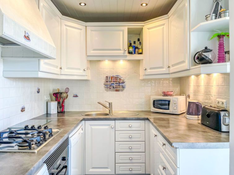3-room apartment 73 m2 on 2nd floor. Comfortable and beautiful furnishings: living/dining room with TV (flat screen). Exit to the balcony. 1 room with 1 french bed (1 x 140 cm, length 190 cm). 1 room with 2 beds (90 cm, length 190 cm). Kitchen (4 hot plates, oven, dishwasher, toaster, kettle, microwave, freezer, electric coffee machine, Capsules for coffee machine (Nespresso) extra).