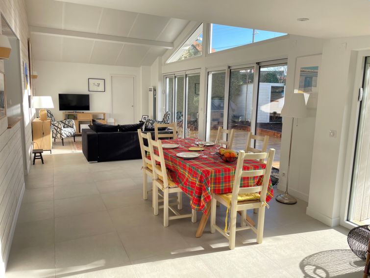 5-room house 120 m2. Spacious and bright, comfortable and beautiful furnishings: living/dining room with TV (flat screen). Exit to the terrace. 1 room with 1 french bed (1 x 160 cm, length 200 cm), shower/WC. 2 rooms, each room with 1 french bed (1 x 140 cm, length 190 cm), shower.