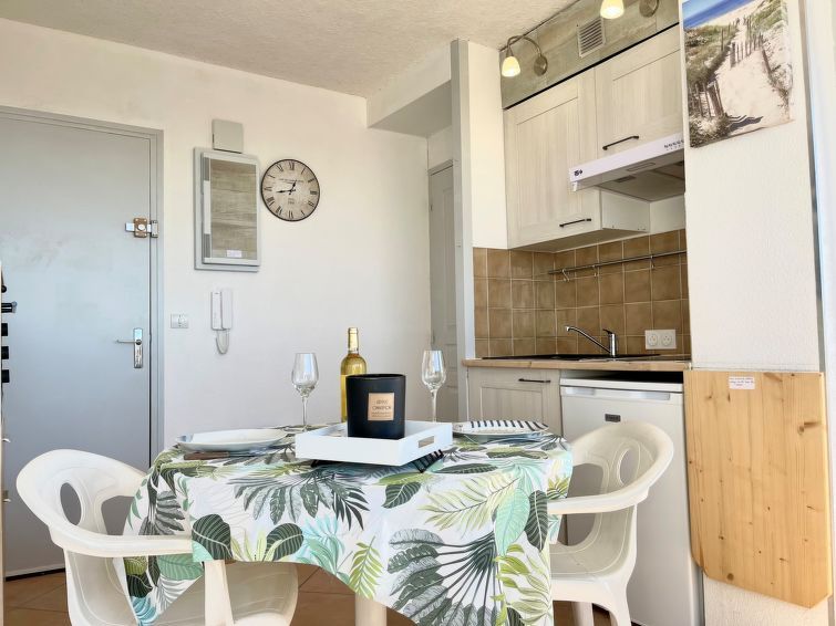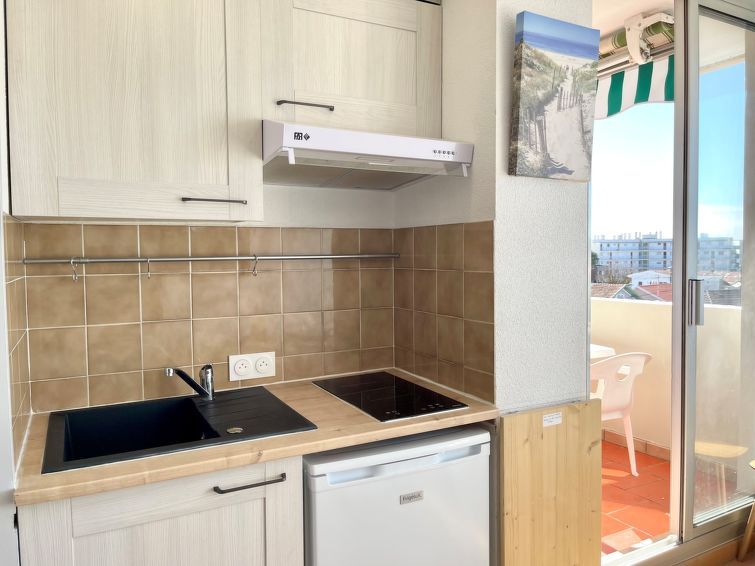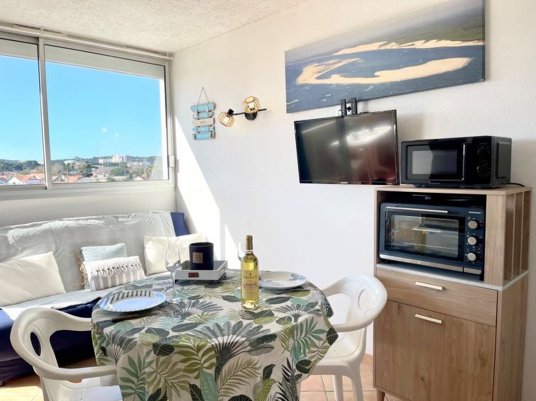 2-room apartment 22 m2 on 3rd floor. Simple and practical furnishings: living/dining room with TV (flat screen). Exit to the balcony. 1 small room with 1 french bed (1 x 140 cm, length 190 cm). Exit to the balcony. Open kitchen (mini-oven, 2 induction hot plates, toaster, kettle, microwave, electric coffee machine, Capsules for coffee machine (Senseo) extra).