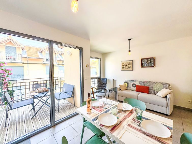2-room apartment 42 m2 on 2nd floor. Comfortable and beautiful furnishings: living/dining room with 1 double sofabed (1 x 140 cm, length 190 cm), TV (flat screen). Exit to the terrace. 1 room with 1 french bed (1 x 140 cm, length 190 cm). Open kitchen (oven, dishwasher, 4 induction hot plates, toaster, kettle, microwave, electric coffee machine, Capsules for coffee machine (Senseo) extra).