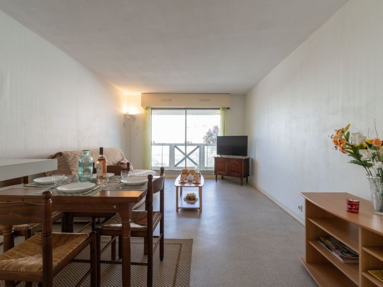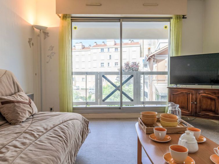 1-room studio 32 m2 on 1st floor. Object suitable for 2 adults + 2 children. Simple furnishings: living/dining room with 1 double sofabed (1 x 140 cm, length 190 cm), TV (flat screen). Exit to the balcony. Entrance hall with 1 x 2 bunk beds (90 cm, length 190 cm). Open kitchen (mini-oven, 2 ceramic glass hob hotplates, toaster, kettle, microwave, electric coffee machine).