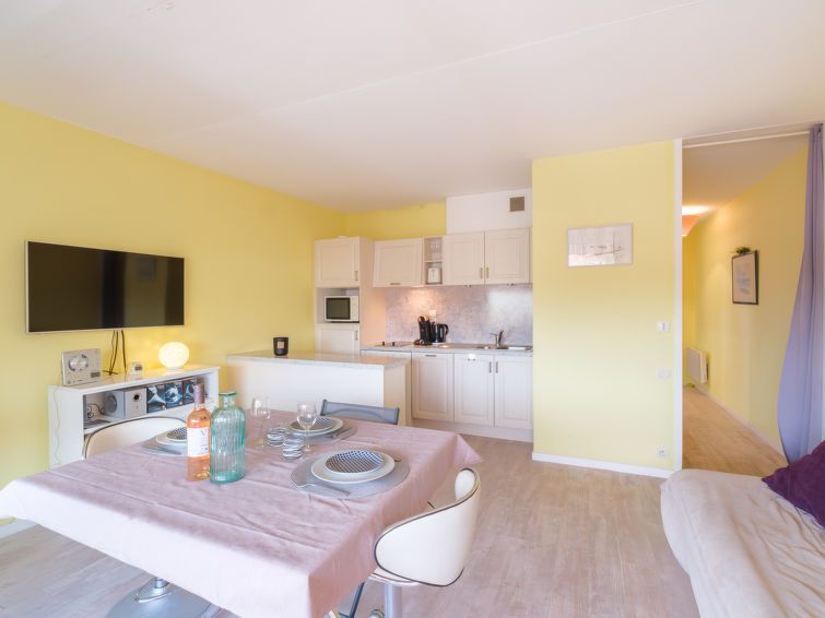 The apartment is very well located, 5 minutes walk from the hyper center (market), 100m from the beach and the Winter Town. It is quiet (stay in January), well equipped. The only drawbacks for me: the toilets in the bathroom and the absence of an oven (there is a microwave). I recommend and will not hesitate to return to this apartment. There is a bicycle available and parking, very useful in this area.