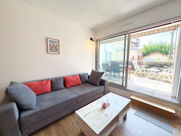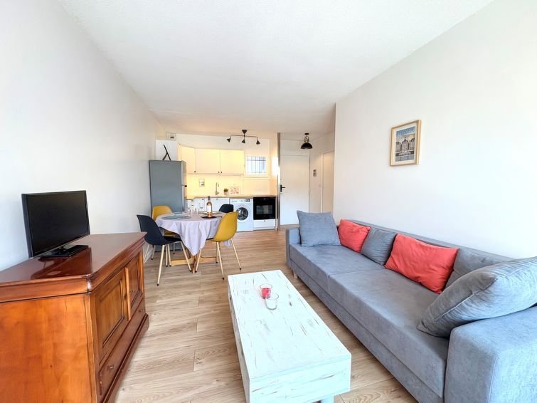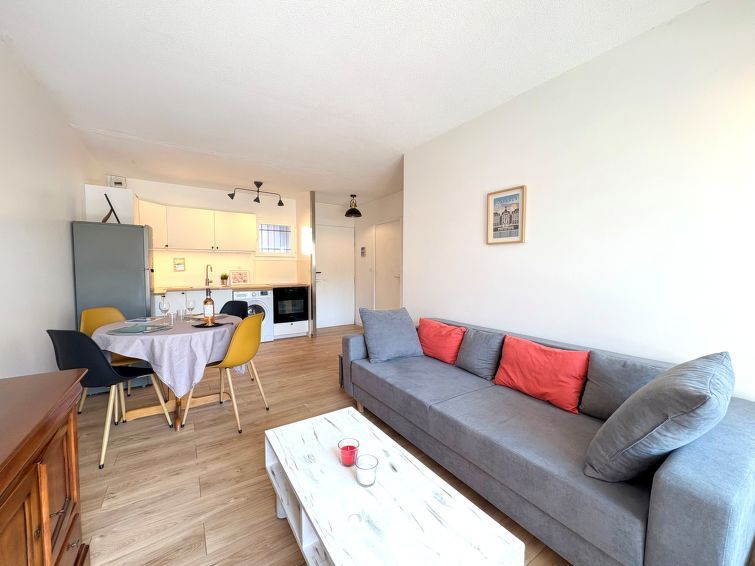 2-room apartment 32 m2, on the ground floor. Beautiful furnishings: dining room with TV (flat screen). Exit to the terrace. 1 room with 1 french bed (1 x 140 cm, length 190 cm). Open kitchen (oven, 3 induction hot plates, toaster, kettle, microwave, freezer, electric coffee machine, Capsules for coffee machine (Nespresso) extra).