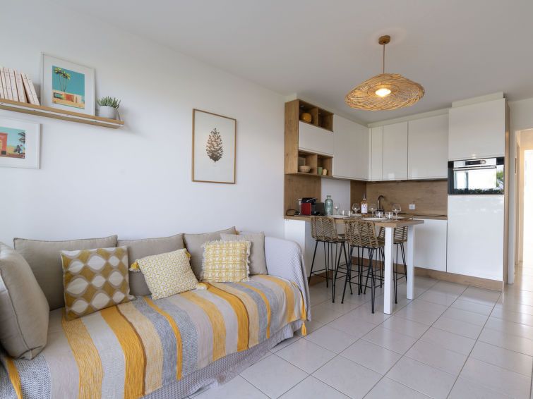 3-room apartment 43 m2, on the ground floor. Renovated in 2021, comfortable and beautiful furnishings: living/dining room with TV (flat screen). Exit to the terrace. 1 room with 1 french bed (1 x 160 cm, length 190 cm). 1 room with 2 beds (90 cm, length 190 cm). Open kitchen (oven, dishwasher, 2 induction hot plates, toaster, kettle, freezer, electric coffee machine).