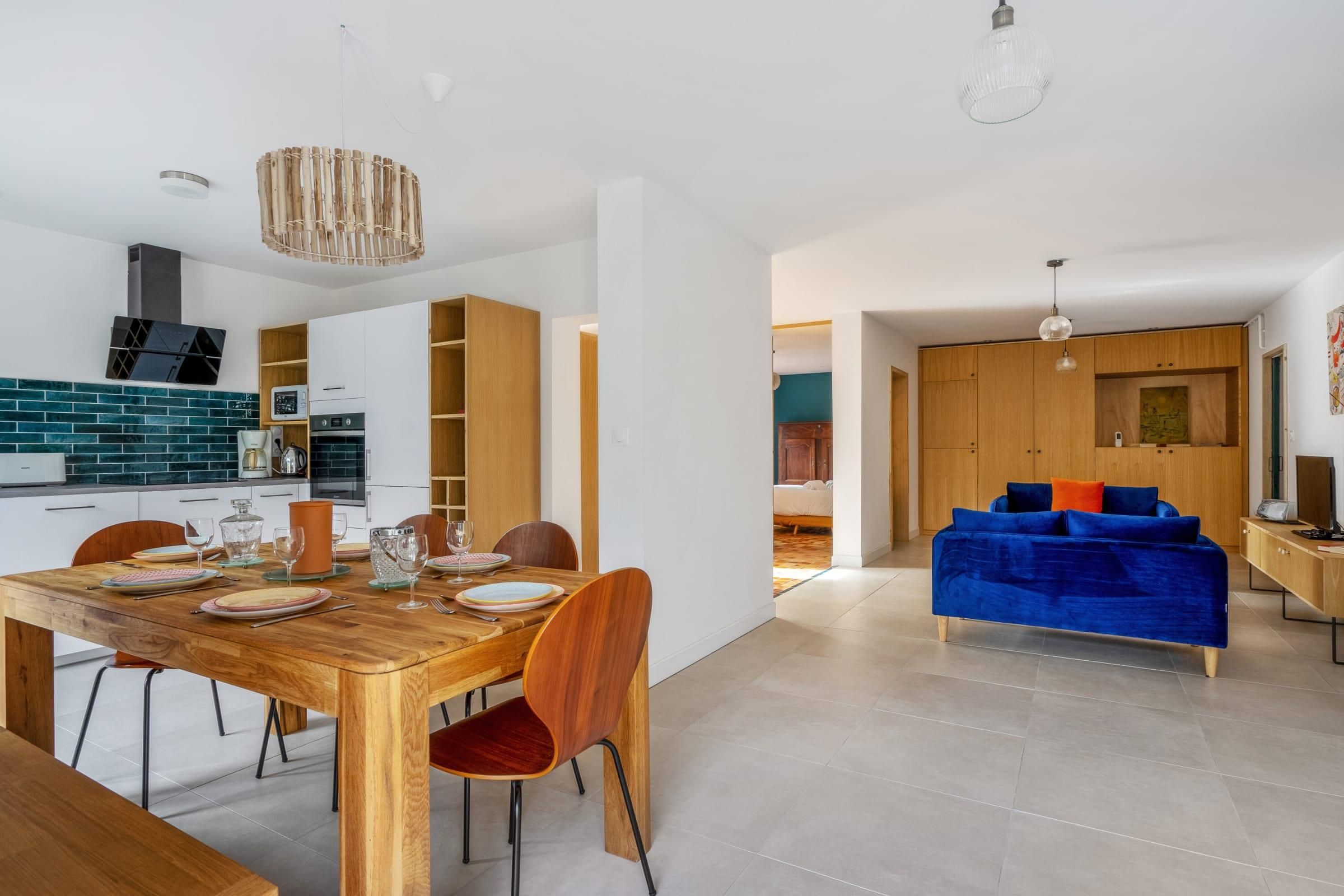 Open the doors from the living room and you’ll find the outdoor terrace is perfectly poised for relaxing mornings with a coffee or dreamy sunset drinks. From here, the space opens itself up to slow days reading on the sofa, cooking and sharing atmospheric candle–lit dinners.