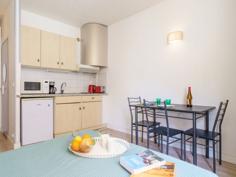 1-room studio 24 m2 on 1st floor. Simple and practical furnishings: living/dining room with 1 double sofabed (140 cm, length 190 cm). Small, open kitchen (2 hot plates, toaster, kettle, microwave, electric coffee machine). Bath/WC. Electric heating. Please note: apartment street side.
