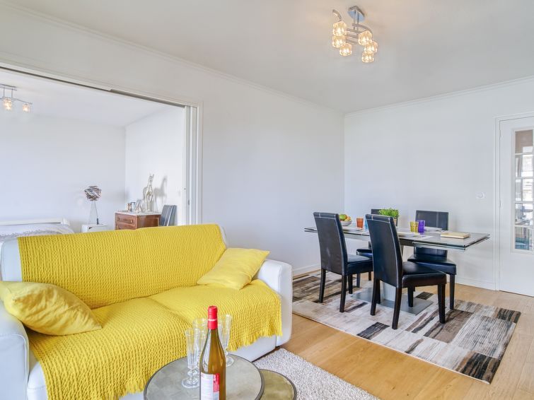 3-room apartment 70 m2 on 2nd floor. Comfortable and beautiful furnishings: living/dining room with TV (flat screen). Exit to the terrace. 1 room with 1 french bed (140 cm, length 190 cm). Exit to the terrace. 1 room with 1 french bed (140 cm, length 190 cm). Kitchen (4 hot plates, oven, toaster, kettle, microwave, electric coffee machine).