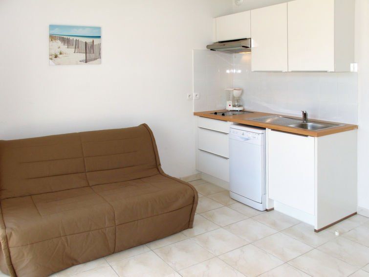 "Résidence Belle Dune", 2-room apartment 30 m2, on the ground floor. Living/dining room with dining table and TV (flat screen). Exit to the balcony. 1 room with 1 french bed (140 cm, length 190 cm). Kitchenette (dishwasher, 2 ceramic glass hob hotplates, toaster, kettle, microwave, freezer, electric coffee machine).