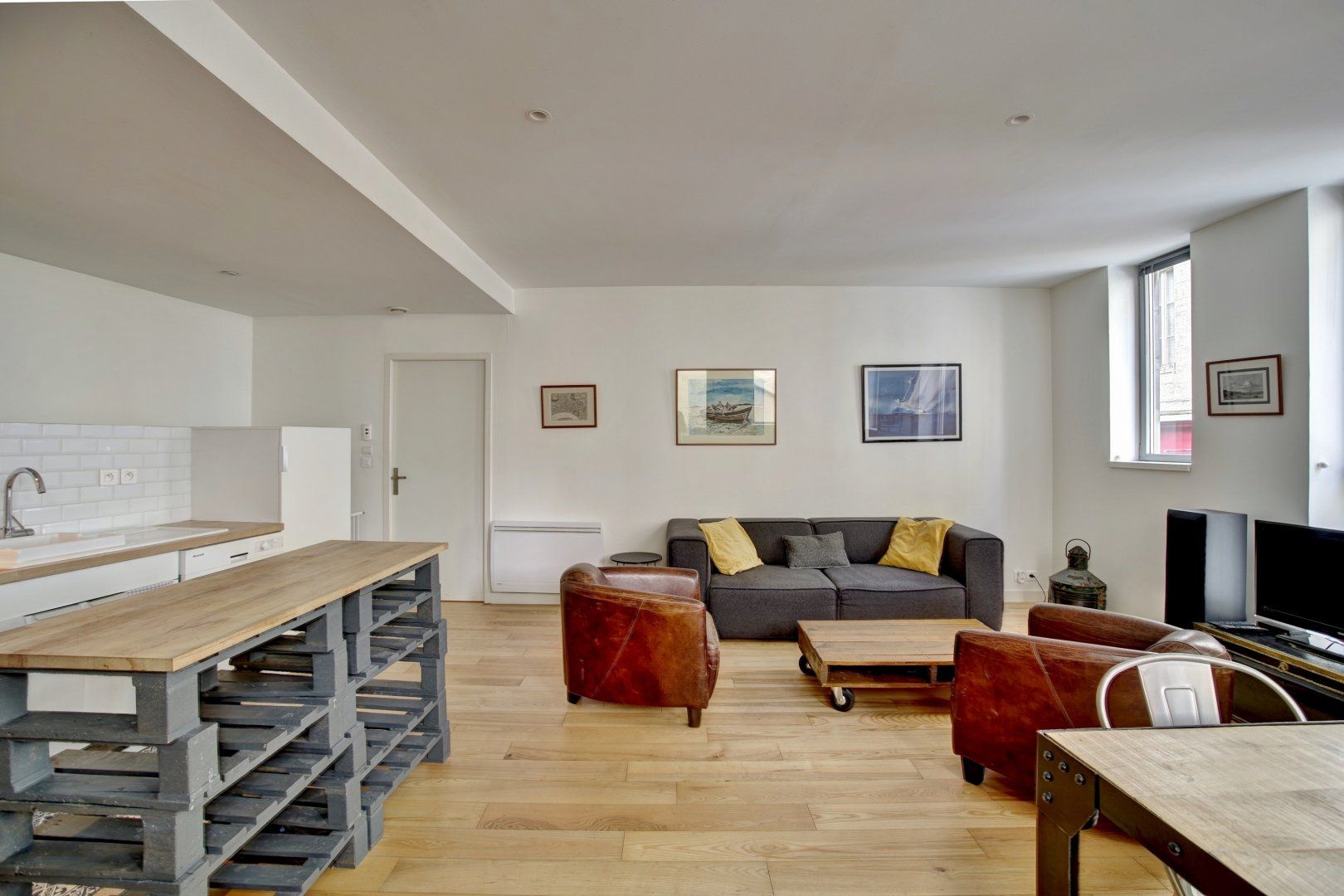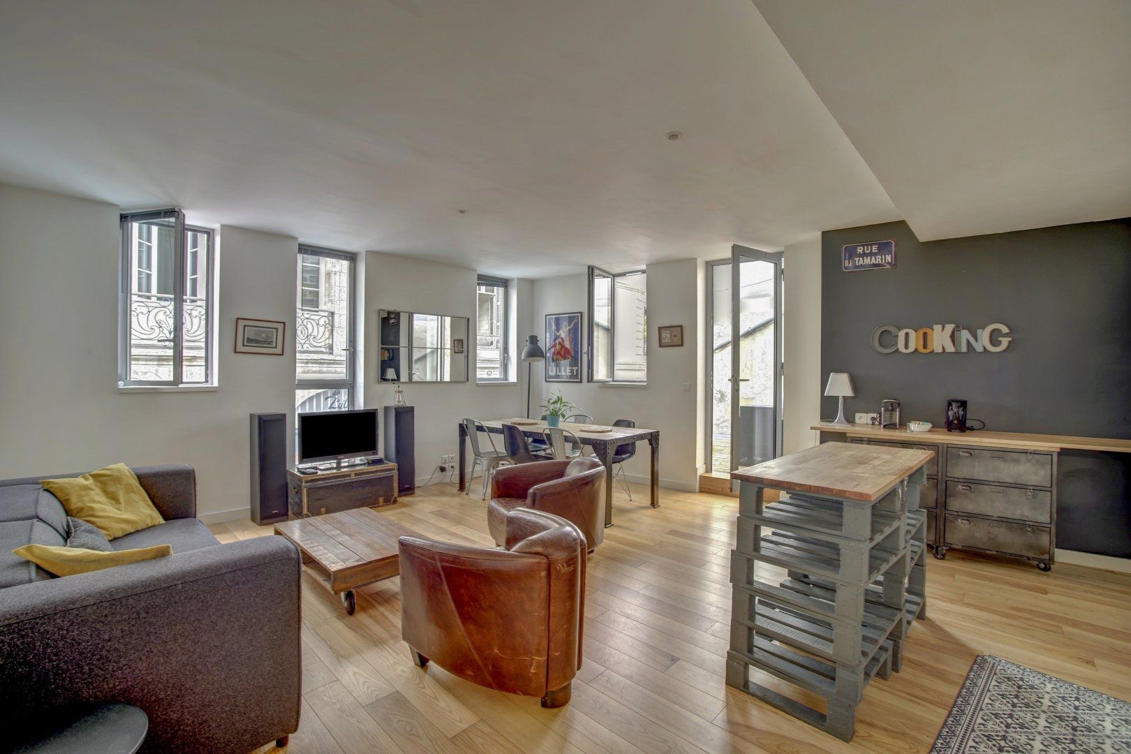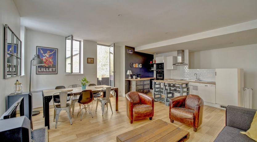 Back at this abode, relax on the terrace with a glass of local wine or unwind on the sofa in the first-floor open-plan living space. We love the mix of industrial vibe (think pallet box coffee tables and polished concrete ceilings), which contrasts with the vintage prints. Rustle up some le magret de canard grille (grilled duck) in the modern kitchen, and enjoy it with some cèpes en persillade (porcini mushrooms in parsley) at your dining table. This home allows friends, family or work colleagues to live like a local.