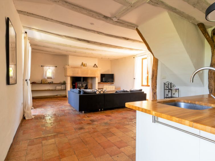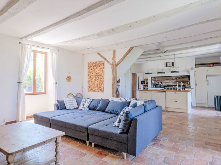 6-room house 232 m2. Spacious and bright, comfortable and beautiful furnishings: living/dining room with dining table. Exit to the garden. Lounge with Scandinavian wood stove and cable TV (flat screen). Exit to the garden. 1 large room with 1 french bed (180 cm, length 200 cm), bath/WC.