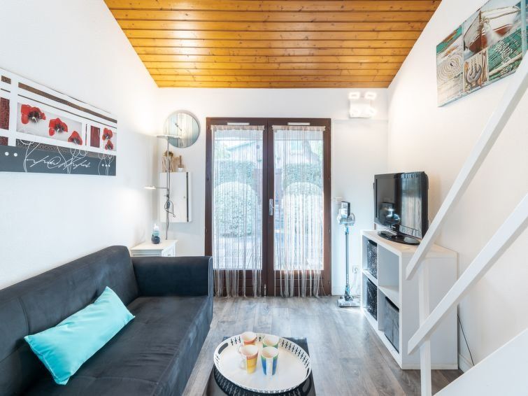 2-room terraced house 35 m2 on 2 levels. Comfortable and beautiful furnishings: living/dining room with TV (flat screen). Exit to the terrace. 1 room 7 m2 with 1 french bed (140 cm, length 190 cm). Open kitchen (oven, dishwasher, 3 induction hot plates, microwave, electric coffee machine).