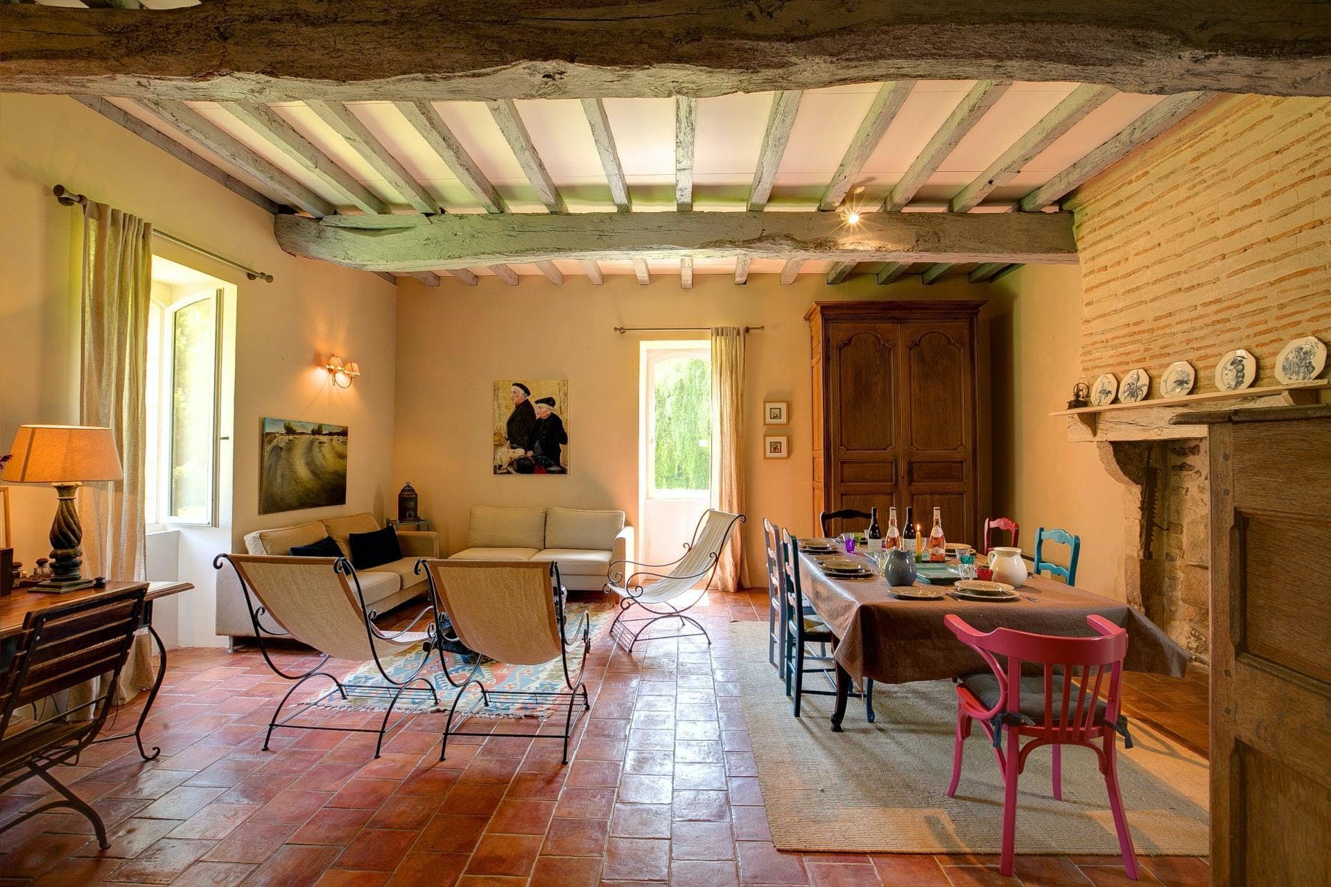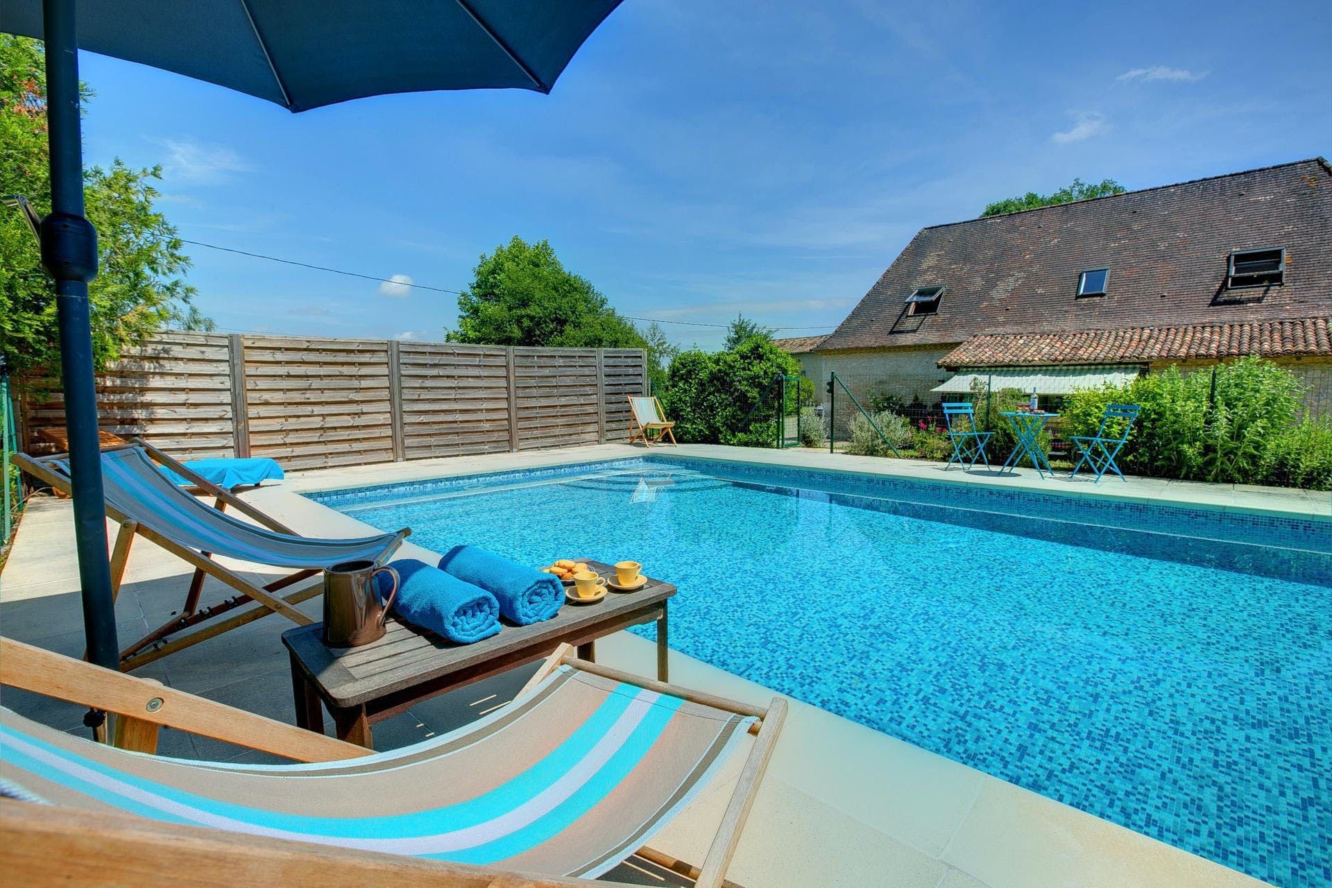 This eighteenth century farmhouse is nestled in the picturesque Périgourdine countryside – famous for its traditional cream-coloured stone houses and gourmet food. The house may feel a little dated, yet charming and provides a great place for spending quality time with your loved ones. The living area opens onto the large garden, which boasts an outdoor pool and a terrace to enjoy local delicacies on. Apart from tasty cuisine, this region also offers some excellent and famous wines, which you can sample in nearby Bergerac or Monbazillac. The latter also has a beautiful chateau, which is well worth a visit.