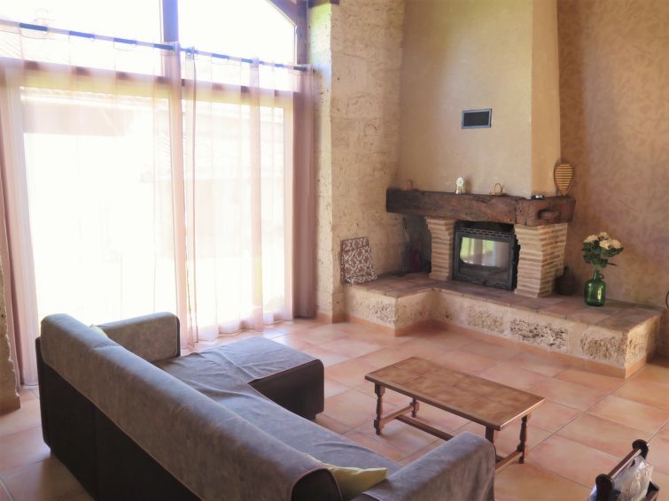 "La Grange Jacques", 3-room house 90 m2 on 2 levels. Comfortable and rustic furnishings: large living/dining room with panoramic window with open-hearth fireplace and TV (flat screen), DVD. Exit to the terrace. 2 rooms, each room with 1 french bed (140 cm, length 190 cm). Large, open kitchen (1 hot plate, dishwasher, 3 gas rings, toaster, kettle, freezer, electric coffee machine, combination microwave) with dining table.