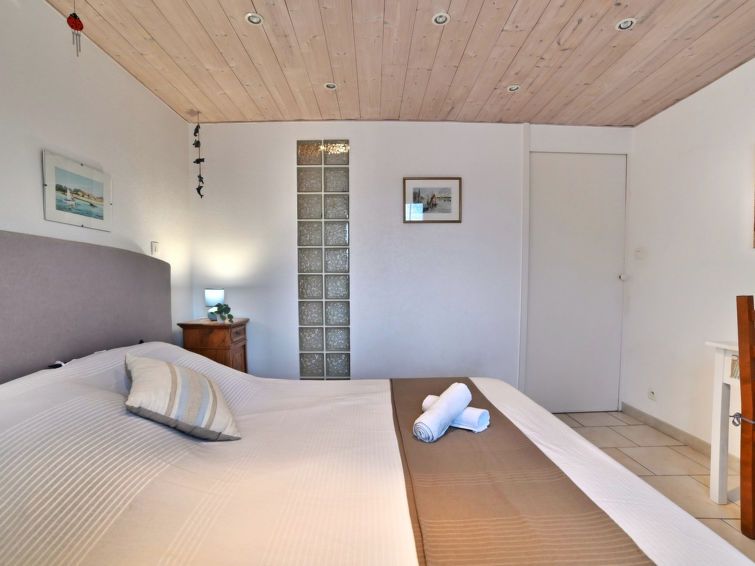 2-room house 60 m2 on 2 levels. Comfortable furnishings: living/dining room with TV (flat screen). Exit to the garden. 1 room with 1 french bed (1 x 160 cm, length 200 cm). Open kitchen (3 ceramic glass hob hotplates, toaster, kettle, microwave, electric coffee machine) with fan. Exit to the garden, to the terrace.