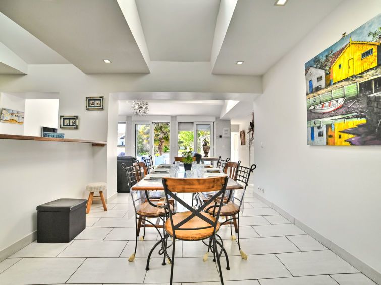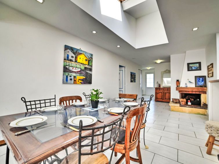 "La Miscandière", 6-room house 160 m2. Comfortable and modern furnishings: large living/dining room with TV (flat screen). Exit to the terrace. 1 room with 1 x 1 bunk beds (90 cm, length 200 cm), 1 french bed (1 x 140 cm, length 190 cm). 1 room with 1 french bed (1 x 160 cm, length 200 cm).