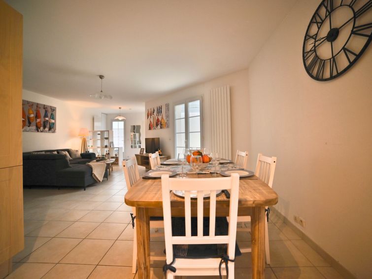 3-room house 90 m2. Bright, beautiful furnishings: living/dining room with panoramic window with TV (flat screen). Exit to the garden, to the terrace. 1 room with 2 beds (90 cm, length 190 cm). 1 room with 1 french bed (160 cm, length 200 cm). Open kitchen (oven, dishwasher, 4 ceramic glass hob hotplates, toaster, kettle, microwave, electric coffee machine).