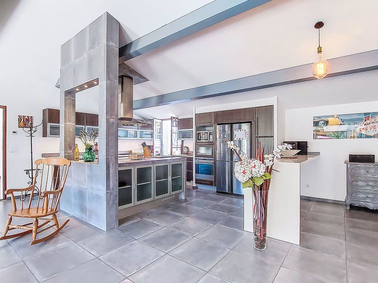 6-room villa 250 m2. Spacious, comfortable and modern furnishings: living/dining room with TV (flat screen). Exit to the garden, to the terrace, to the swimming pool. 1 room with Dressing room with 1 french bed (1 x 160 cm, length 200 cm). Exit to the terrace. 1 room with 1 french bed (1 x 140 cm, length 190 cm).
